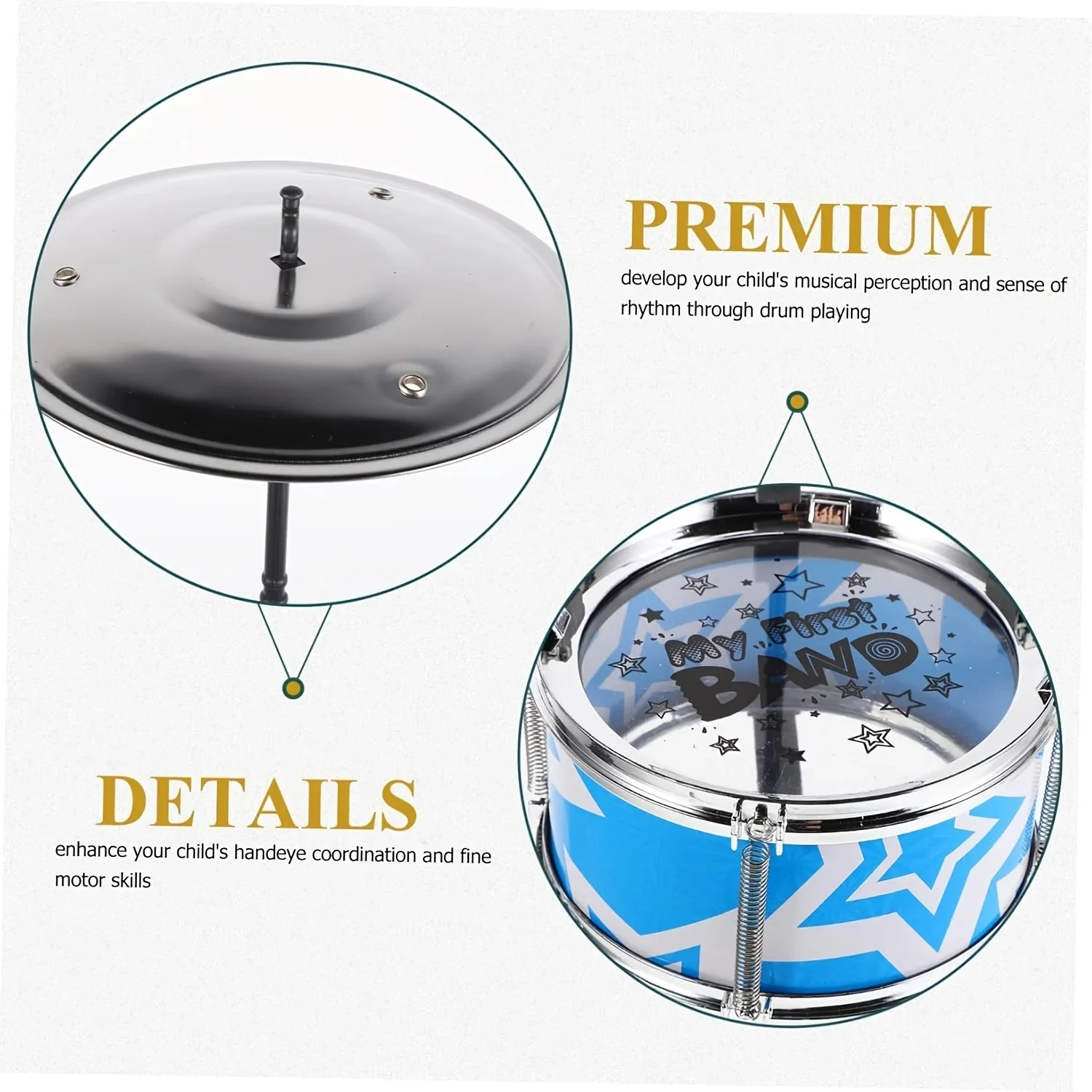DescriptionJazz drum set instrument toy for beginners, percussion instruments, children's music toys, suitable for kids' birthdays and gift