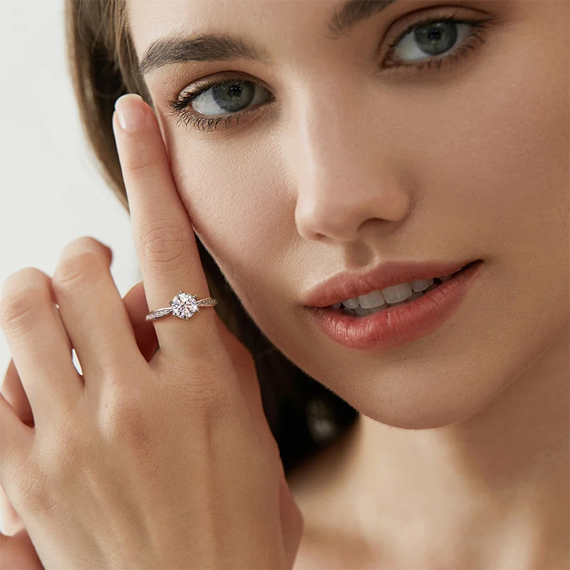 KNB Real 0.5-2CT Moissanite Diamond Rings for Women Wedding Engagement 925 Sterl