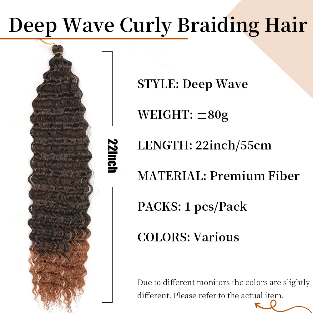 Long Deep Wave Curly Synthetic Braiding Hair Ocean Wave 22 inch Crochet Hair Sof