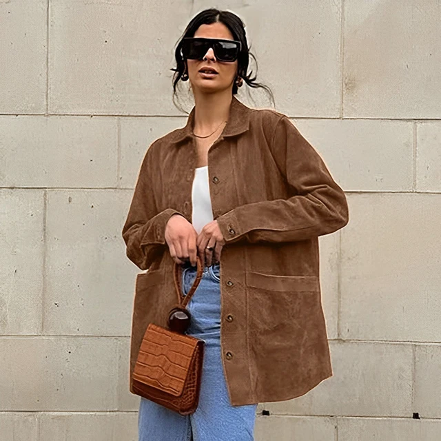 Loose Brown Coat Women Turndown Collar Long Sleeve Button Jackets Female 2024 Wi