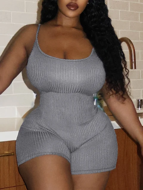 LW BASICS Plus Size Rib Knit Cami Romper Plus Size Rib Knit Cami Romper WomenCas