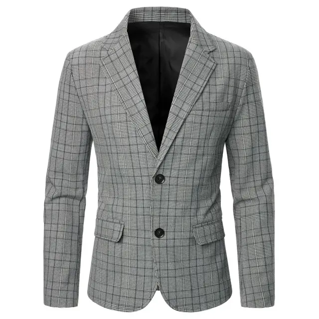 Men's Blazer Striped Black And White Grid Men's Coat British Casual Style Men's