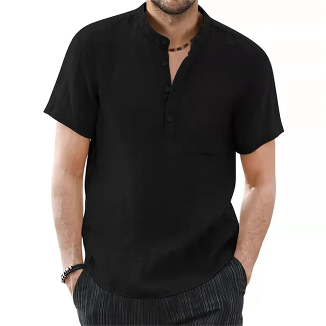 Men's Short Sleeve T-shirt Cotton and Linen Casual Men T-shirts Solid Color Summ