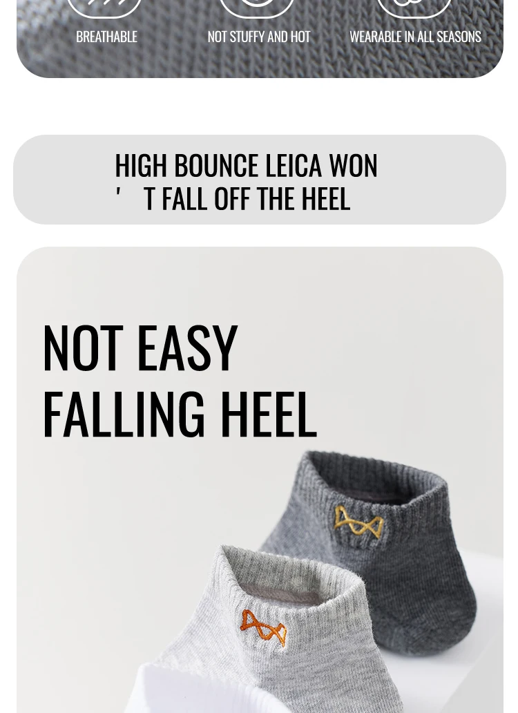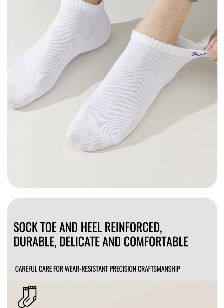 Pure Cotton Material Crafted from pure cotton, these socks offer a soft, breathable feel, perfect for all-day comfort. Invisible Ankle Style Invisible ankle design provides a sleek look under any shoe, enhancing your professional appearance. Non-Slip Design The non-slip feature ensures stability, making them ideal for sports and active lifestyles. Breathable Business Dress Sock A blend of style and functionality, these socks are perfect for business dress code while maintaining breathability. Anti-Sweat Deodorant Formulated with anti-sweat properties, these socks keep your feet dry and odor-free.