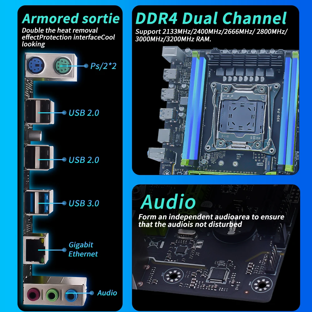 MUCAI X99 P4 Motherboard LGA 2011-3 Kit Set With DDR4 16GB(2*8GB) 2666MHz RAM Me