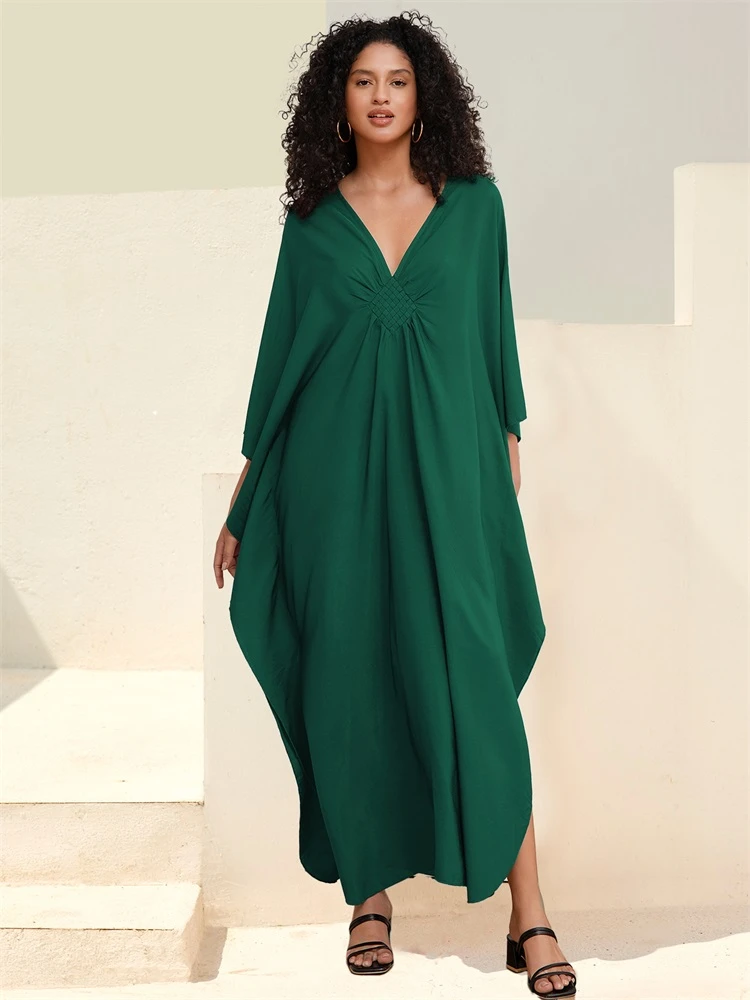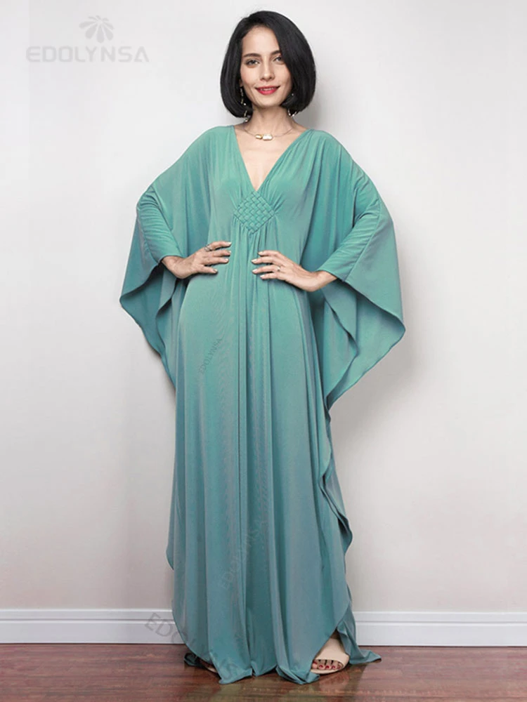 2025 Multicolor V-neck Batwing Sleeve Plus Size Loose Maxi Dress For Women Summer Beach Wear Kaftan Long Bathing Dresses Q1306 ![]()