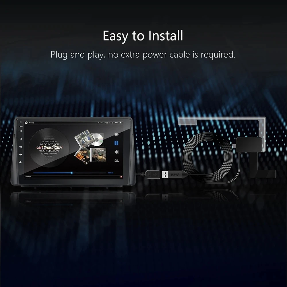 Features: This DAB+ receiver works with most current Android car radios. It is an upgraded version of the DAB+, offering a better operating experience and higher signal reception performance. Its automatic adjustment function further provides drivers with great convenience while driving. Note:This is a digital radio receiver designed for Android players. Download and install the corresponding APP on your Android radio to use it. Not compatible with WinCE system. 1.Suitable for all Android Car radio, Android version4.4 or higher 2.The antenna has superb reception. 3. Plug and play, connect via USB. 4.Receive DAB and DAB+ signals with stable reception and high signal-to-noise ratio. 5.Provide stereo sound and high-qualitysound. Frequency range: 174MHz-239MHz USB interface: USB2.0 Antenna interface: SMA, built-in 5V output APK installation method: 1. Please download APK from the following link. https://apkpure.com/dab-z-player-for-usb-tuners/com.zoulou.dab 2. Copy the APK to the USBflash drive. 3. Plug inthe USBinto your Android device. 4. Install the APK using a file manager or ES file. 5. Connect the USB DAB receiver to the Android radio.