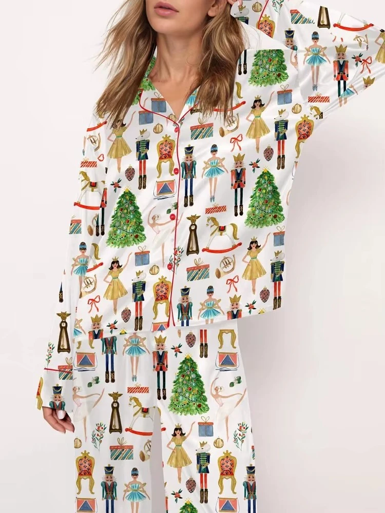 New Christmas Cartoon Women's Pajama Set 3D Printed Casual Men's and Women's Long Sleeve Shirt Comfortable Pajama Set