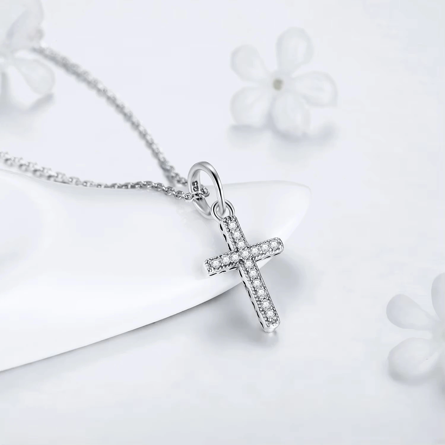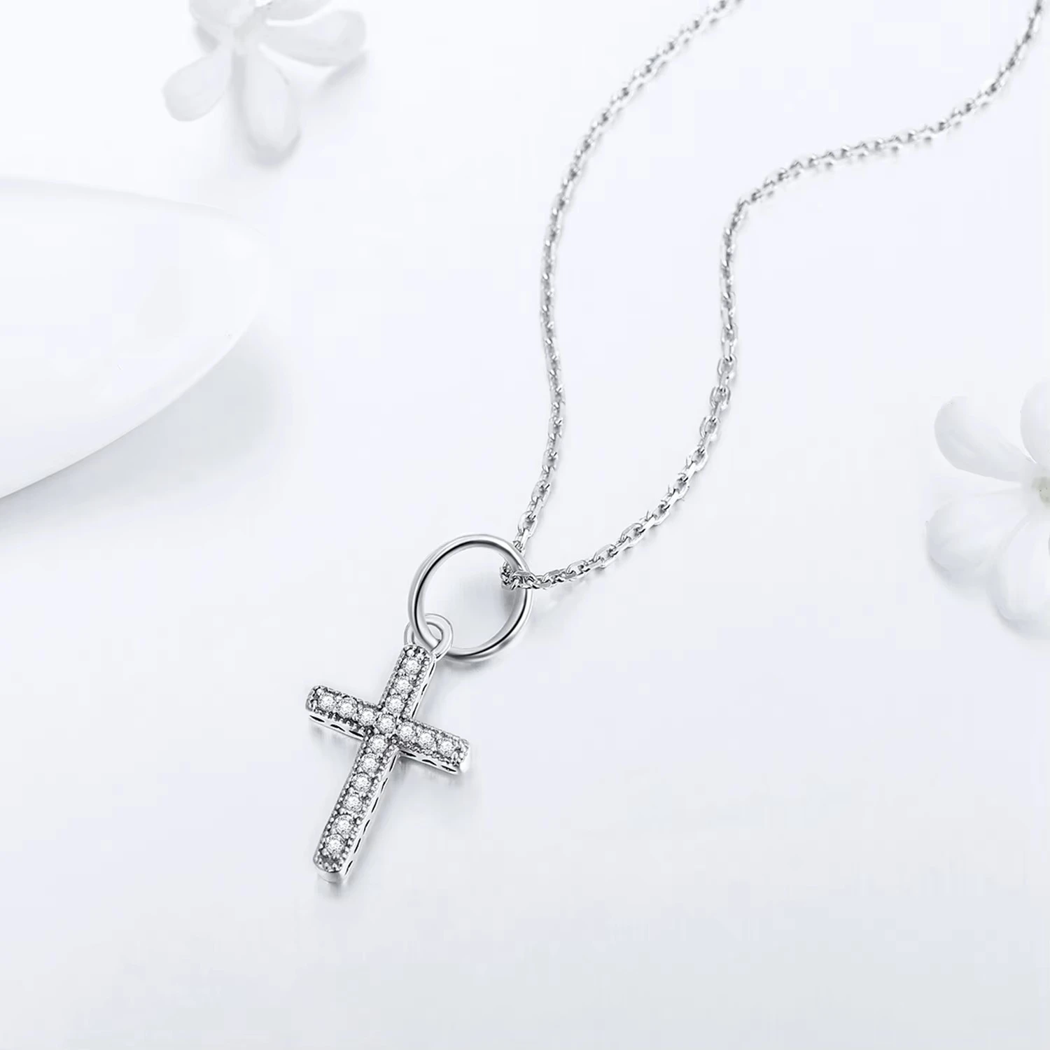 New Sale Real 925 Sterling Silver Zirconia Hearts Cross Necklaces Pendants With Chain For Women Fashion Silver Jewelry