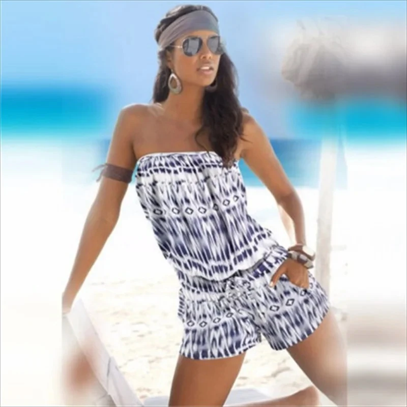 new spring and summer fashion, strapless, one-shoulde,r one-piec,e casual, printed,d drawstring one-piece pants