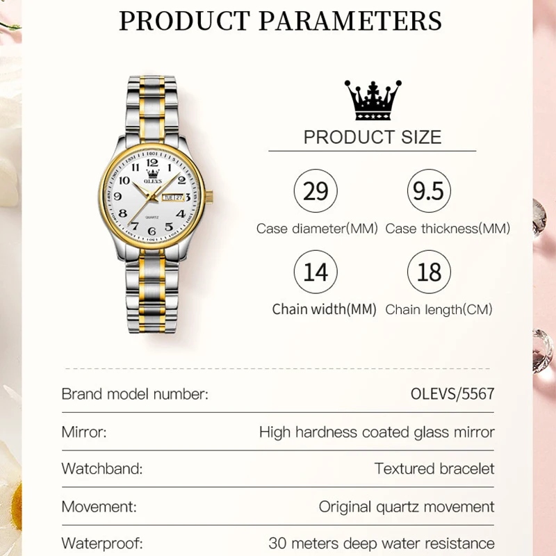 OLEVS Women's Wrist watch Original Luxury Watches for Ladies Waterproof Stainles