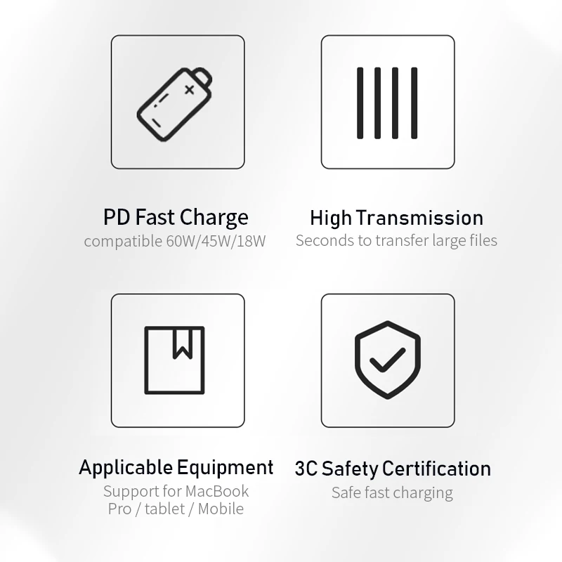 PD Type C to Type C Cable 60W Fast Charging Cable USB C To USB C Cable For iPad