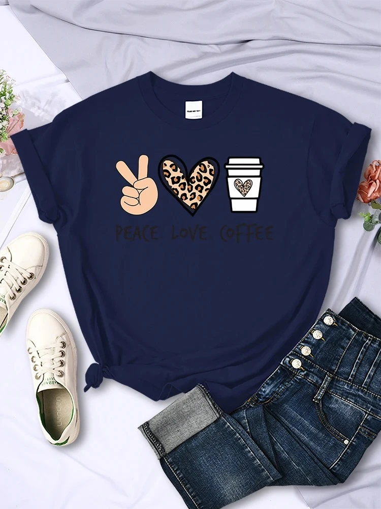 Peace Love Coffee Prints Women Tshirts Cotton High Quality T-Shirts Brand Breath