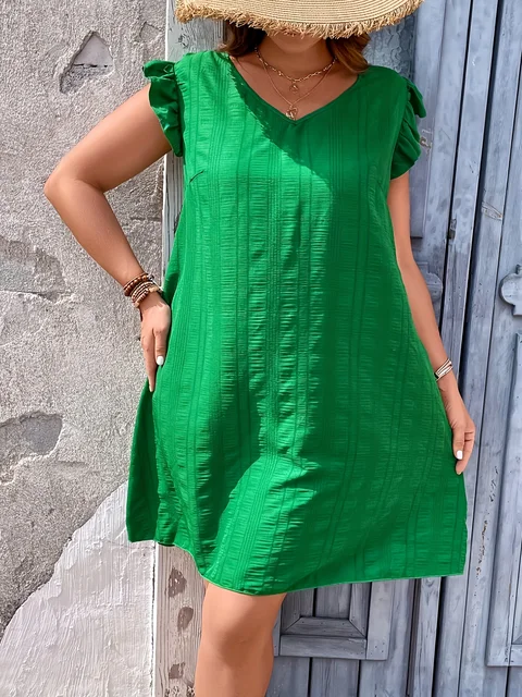 Plus Size Summer Women Elegant Dress Casual Vacation Solid Back Knot V Neck Loos
