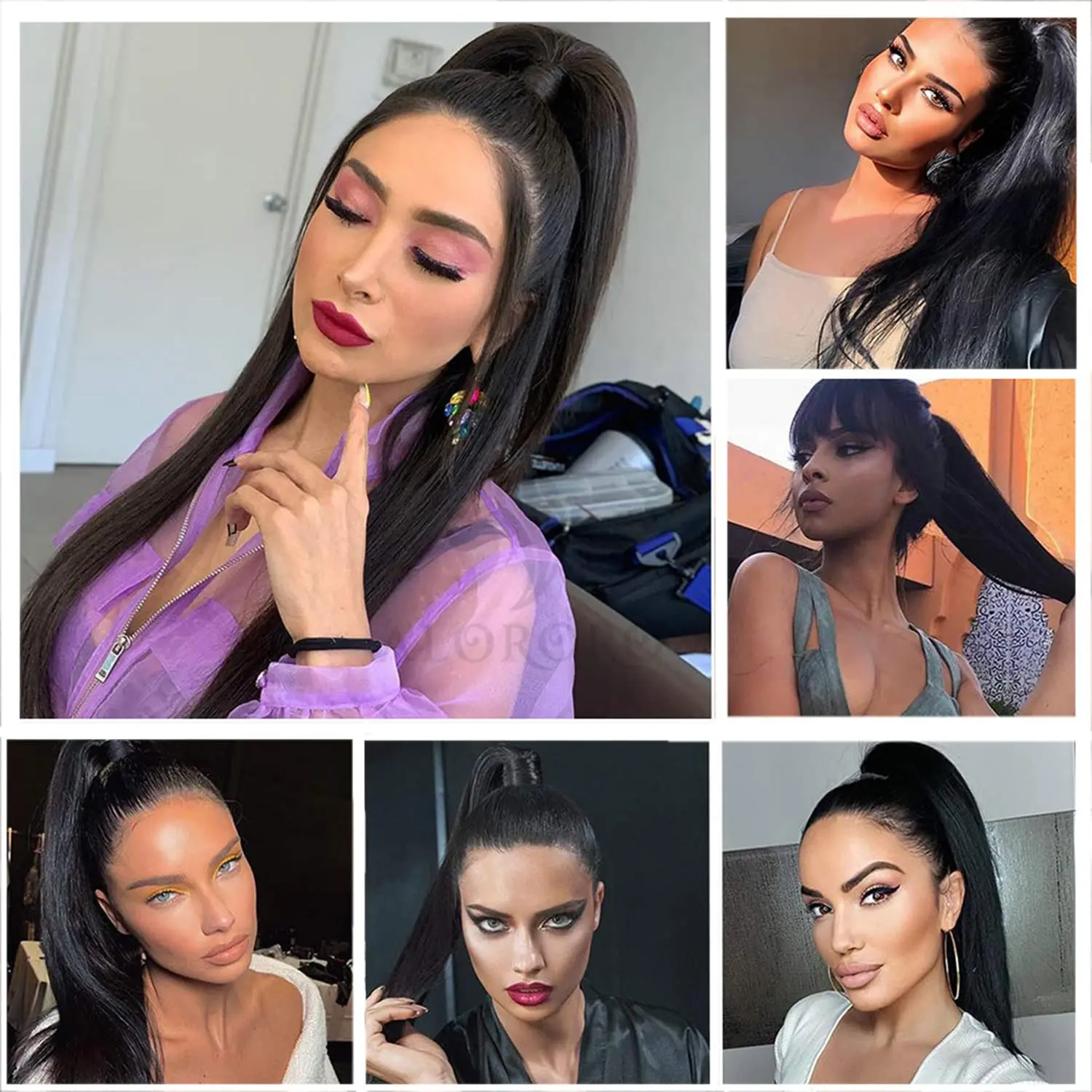 Ponytail Human Hair Extensions With Clip 10"-26" 100gram Natural Color Straight
