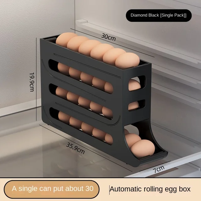 Refrigerator Egg Storage Box, 4 Tier Rolling Egg Holder Dispenser, Kitchen Autom