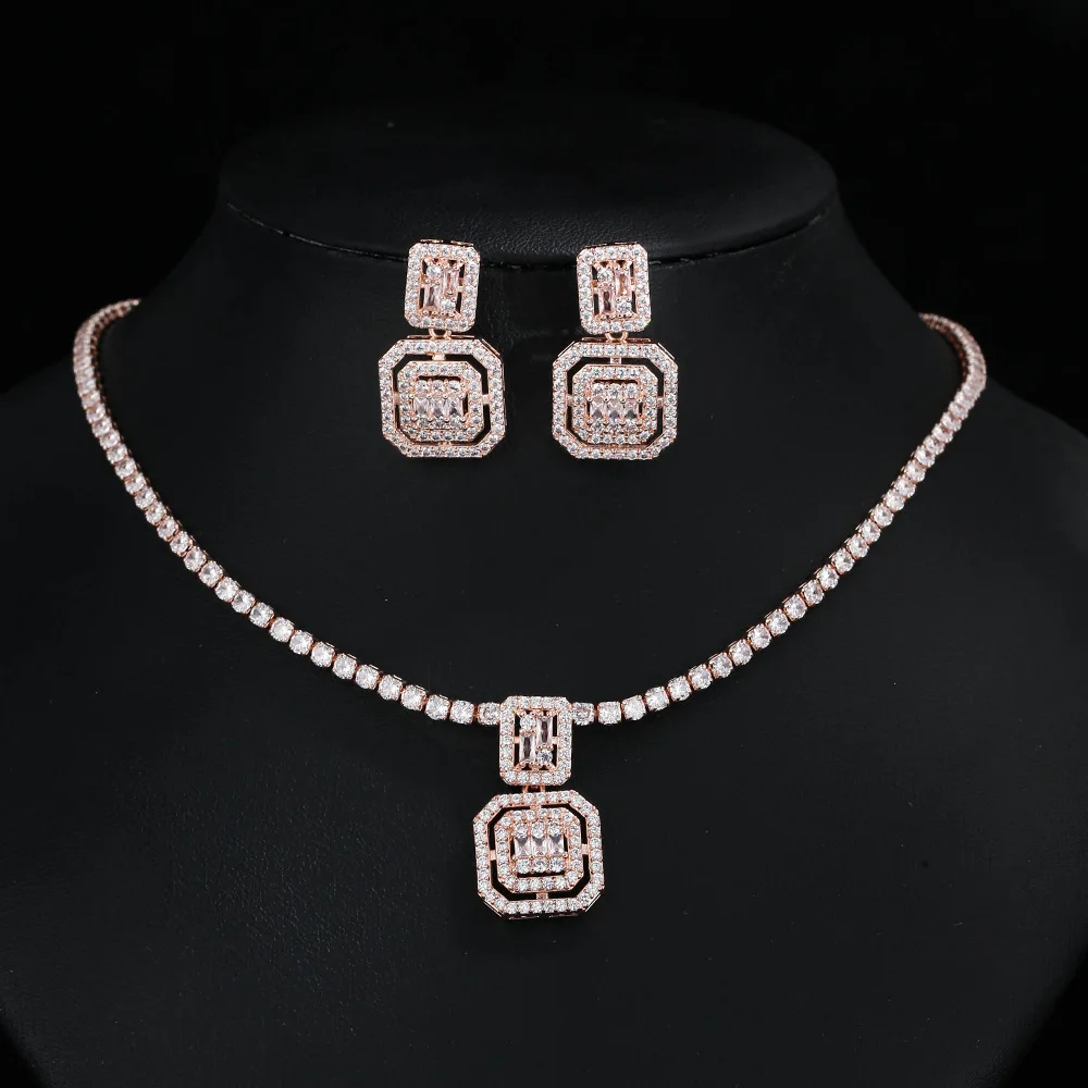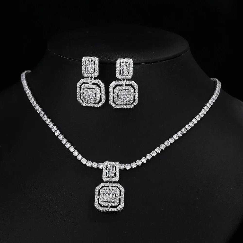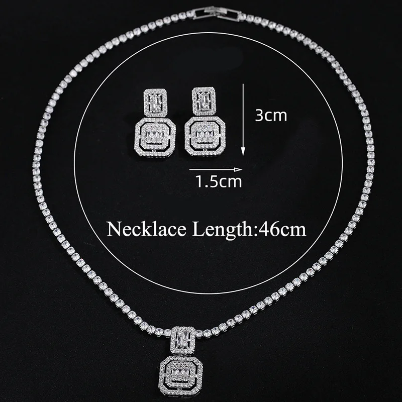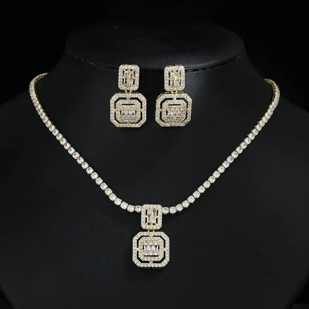 Customizable Options With the option for customization, this set can be tailored to suit individual preferences and styles. Versatile Usage Ideal for weddings or everyday wear, this set complements various outfits and occasions. Fashionable Elements Incorporating trendy square shapes and celestial motifs, this set stays current with fashion trends. Design Aesthetics Featuring a vintage, minimalist design with geometric patterns, this set exudes elegance and sophistication. Material Quality Crafted from high-quality copper and zirconia, this jewelry set offers durability and a luxurious feel.
