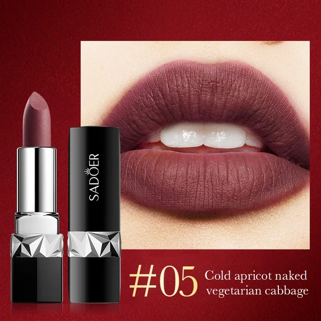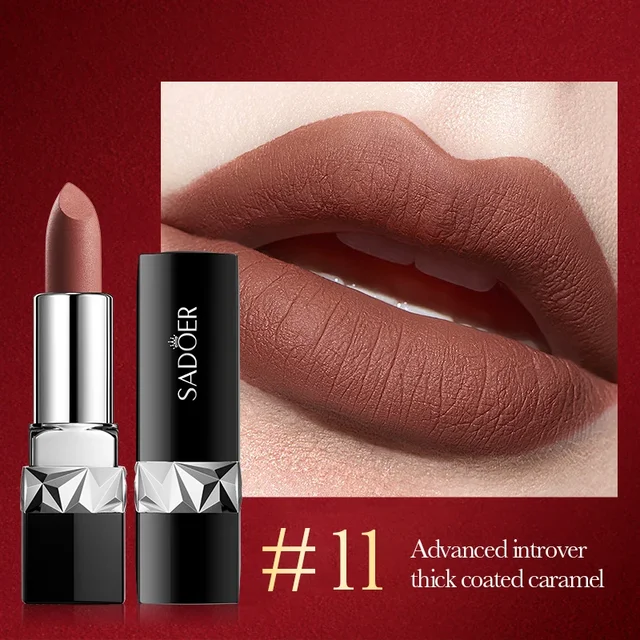 SADOER 12 Colors Velvet Matte Lipstick Waterproof Sexy Long-lasting Lip Gloss Ma