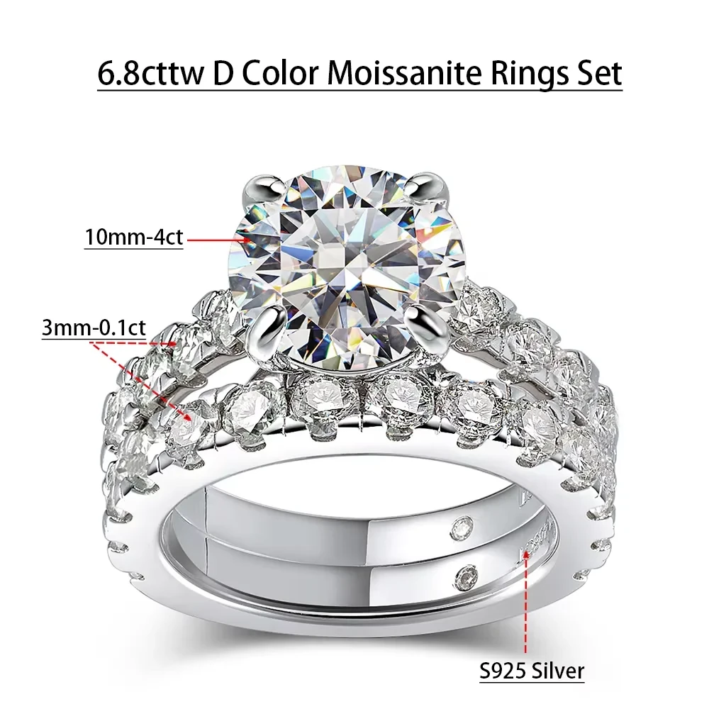 Serenity 6.8cttw D Color Moissanite Rings Set for Women Man Wedding Bridal Gift 100% S925 Sterling Silver Row Rings Fine Jewelry Name : 100% S925 Sterling Silver Inald D Color Moissanite Row Rings Material : S925 Silver + Moissanite Stone size: 3mm 10mm Inlaid : D Color VVS1 Moissanite Certificate : GRA Certificate Carat : 6.8ct Style : 6.8cttw Moissantie Rings Set For Women Man Style 1 : D Color Moissanite Diamond Rings for Wedding Bridal Style 2 :S925 Sterling Silver Row Rings for Anniversary Gift Style 1 :D Color Moissanite Wedding Rings For Anniversary Gift For: Women and Lady Use For : Party Wedding and Birthday 【 Premium Moissanite】Lab Created Moissanite Diamond shines brighter than a diamond or any other gemstones and you'll never get tired of seeing the sparkle from all angle! Moissanite is tougher and will not chip as easily or lose brilliance as fast thus making it a good choice for buyers looking for excellent jewelry at reasonable price. 【925 Sterling Silver】This Moissanite tennis bracelet is made with 18K White Gold Over Sterling Silver, allowing the beauty of the Synthetic Moissanite Diamond to truly shine. This Moissanite Diamond Chain bracelet are an enchanting, effortless look he'll love 【Gemstone 】Round Cut Lab Created Moissanite Diamond Having Clarity Of VVS, Moissanite Diamond Color : D-F, Setting : Pave Setting Type, Excellent Cut, Stamped With 925. This tennis bracelet secures with a box-with-tongue-and-safety clasp. 【Your Lovered One】Perfect gift : This Moissanite Diamond Cuban Link Chain bracelet is a gift for any occasion such as birthday gift, valentine's day gift, engagement, promise, holiday Christmas, new year bling, costume, wedding, anniversary, It also fits for any occasion as daily wearing home and office