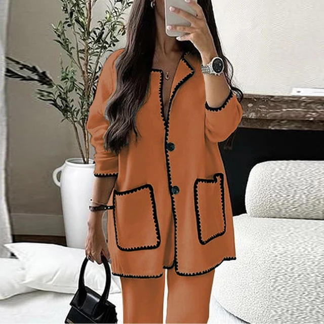 Shirt And Blouses Cardigan Coat Luxury 2-Piece Pocket Set Straight Long Pant Cas