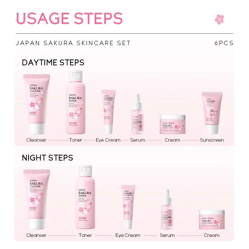 Skin Care Set JAPAN SAKURA Beauty Gift Sets Skin Care Kit with Cleanser, Toner,
