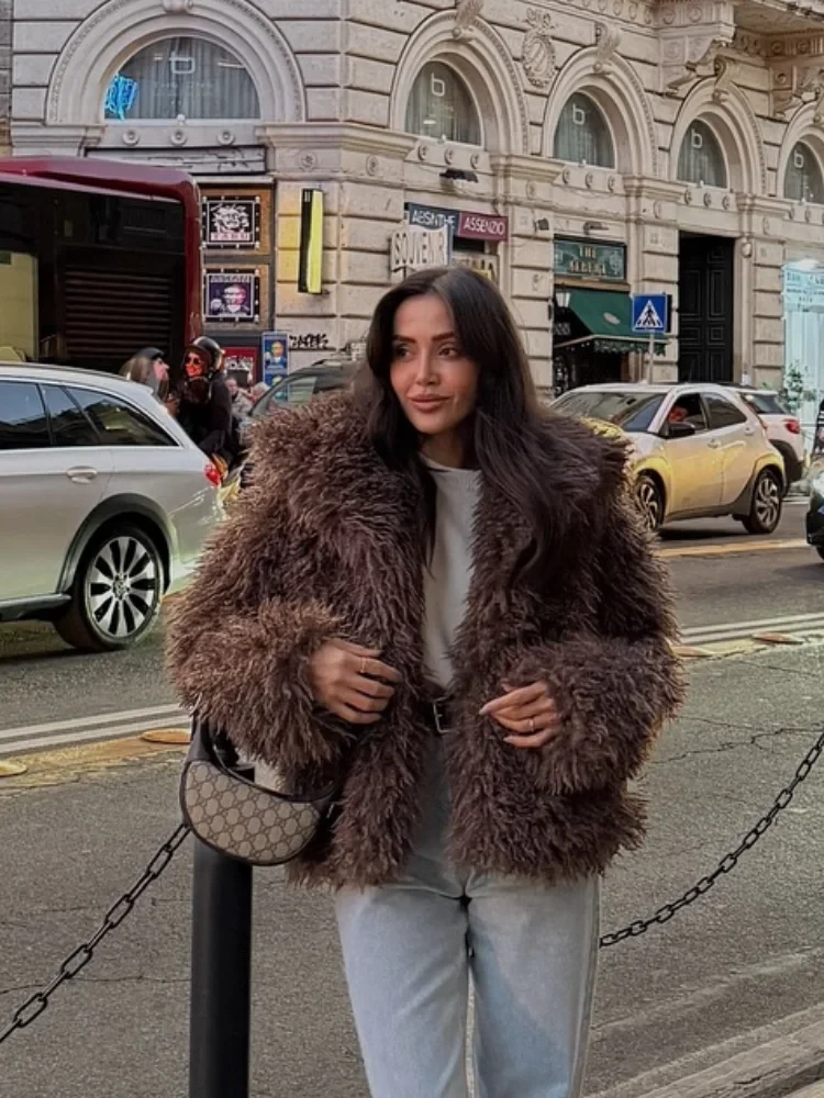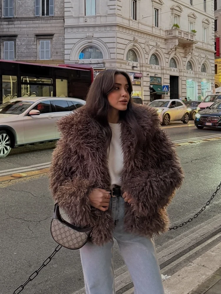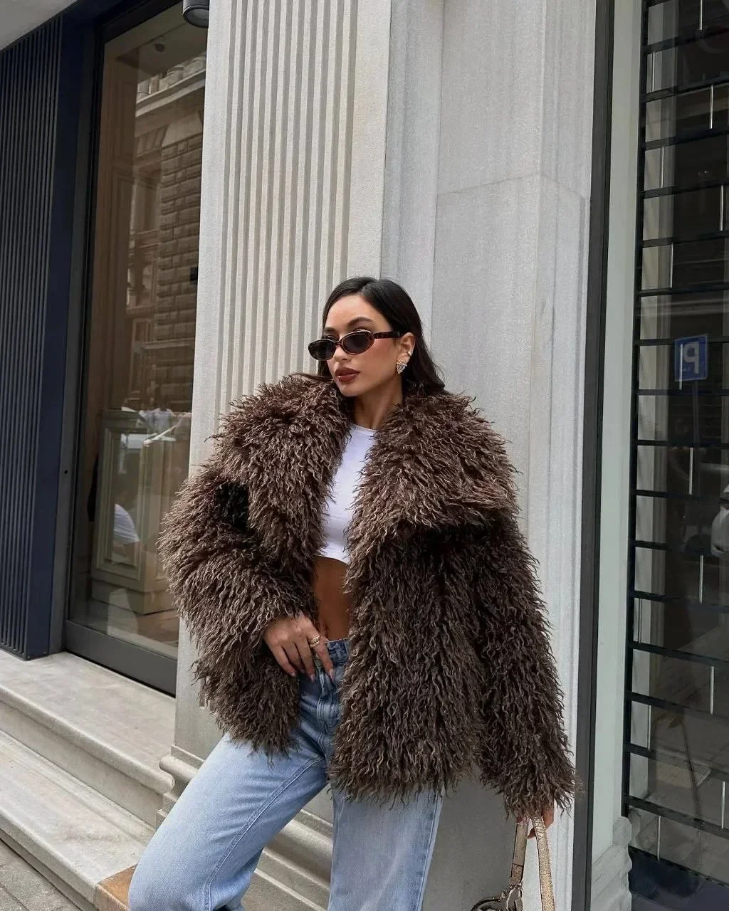 Elegant Design The turn-down collar and covered button closure add an elegant touch to this practical outerwear piece. High-Quality Faux Fur Crafted with 96%+ man-made fibre, this faux fur coat offers a luxurious feel and high durability. Warm and Cosy With full sleeve length and a warm design, it's perfect for autumn/winter wear, providing comfort and style. Versatile Style Featuring a casual lapel and high street style, this coat transitions seamlessly from office to evening outings. Suitable for Middle-Aged Women Designed for middle-aged women, this coat combines age-appropriate elegance with contemporary fashion