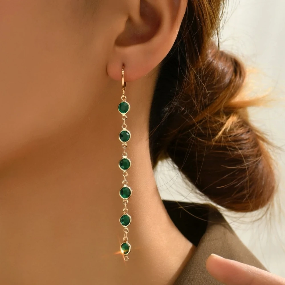 South Korea Colorful Drop Rhinestone Earstring Fashion Temperament Simple Green