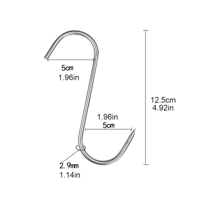 Stainless Steel S Hooks with Sharp Tip Utensil Meat Clothes Hanger Hanging Hooks