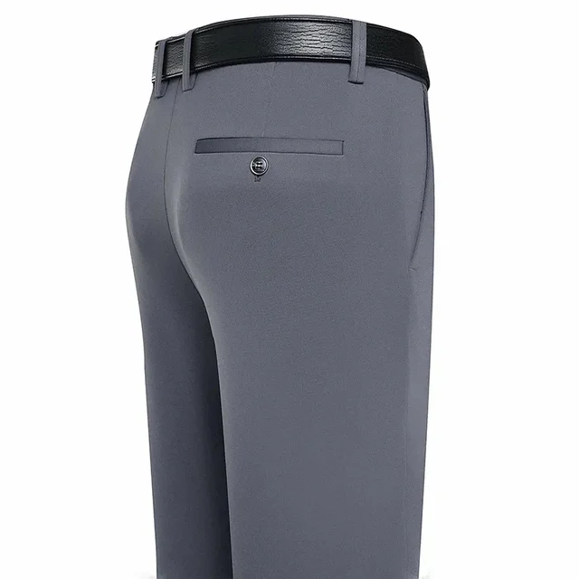 Suit Pants Men Business Casual Trousers Formal Dress Straight Pants Elastic Blac