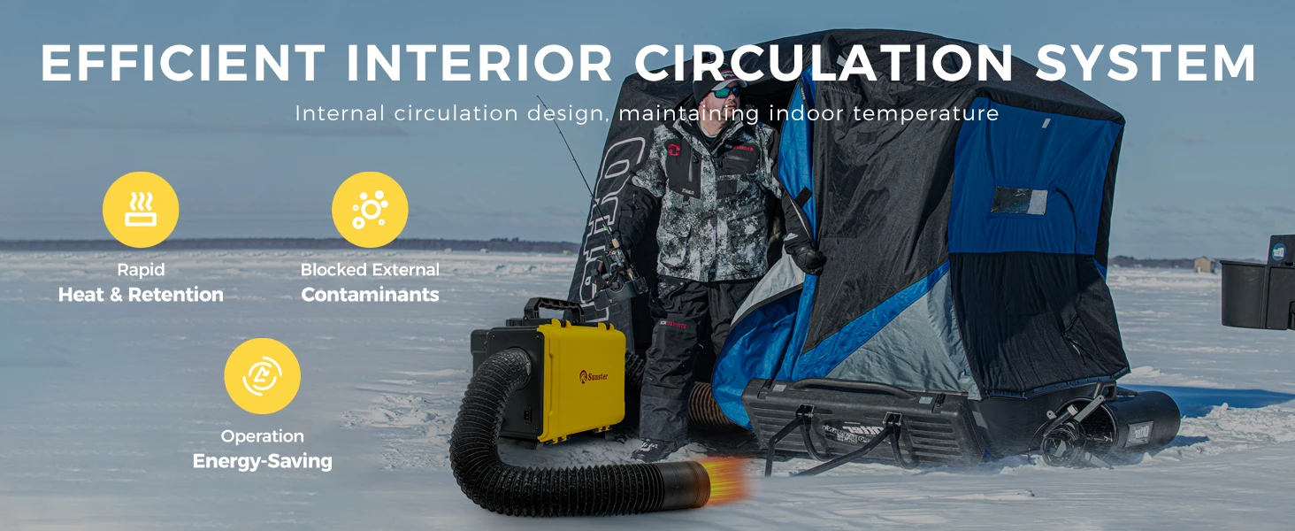 Configure Efficient internal circulation system:has Air Hot pipe on either end ofthe unit. This allows warm air to be drawnnto the unit reheated and blown back out rather like the heating system on all modern vehicles. This greatly increases theefficiency and reduces the amount of diesel needed to operate the machine.