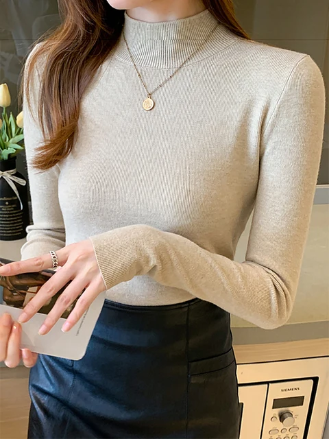 Turtleneck Sweater Women Fashion 2024 New Stretch Tops Women Knitted Pullovers L