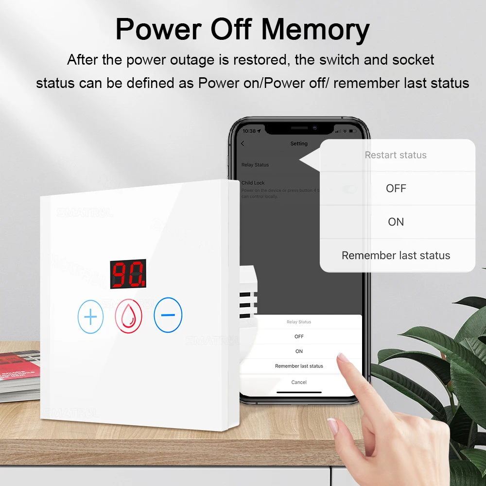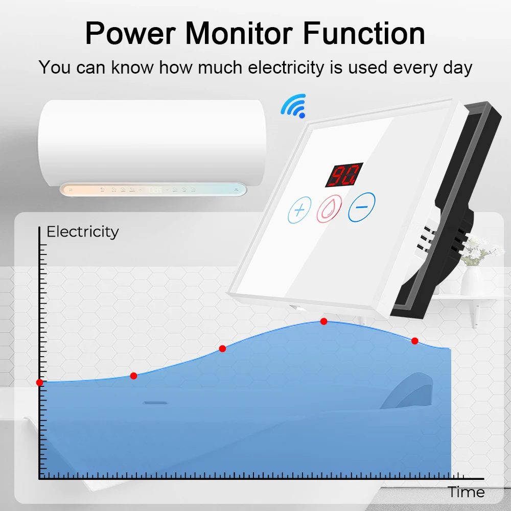 Tuya 20A WiFi Boiler Switch Power Monitor EU/US 4400W Smart Water Heater Panle A