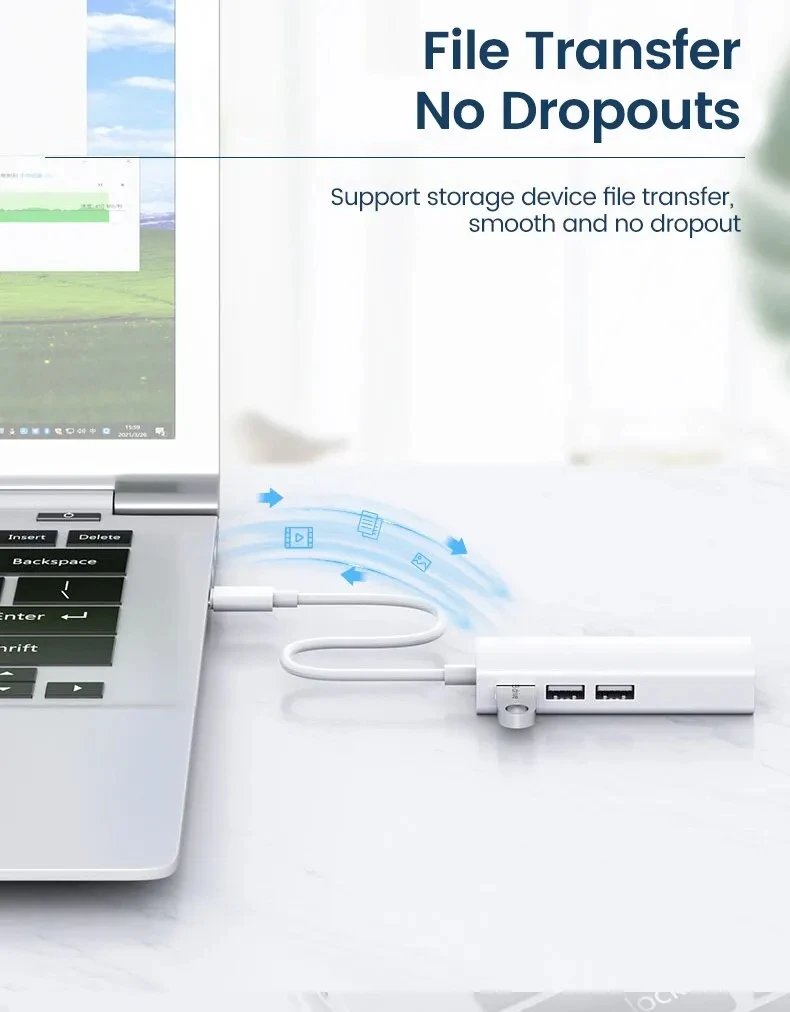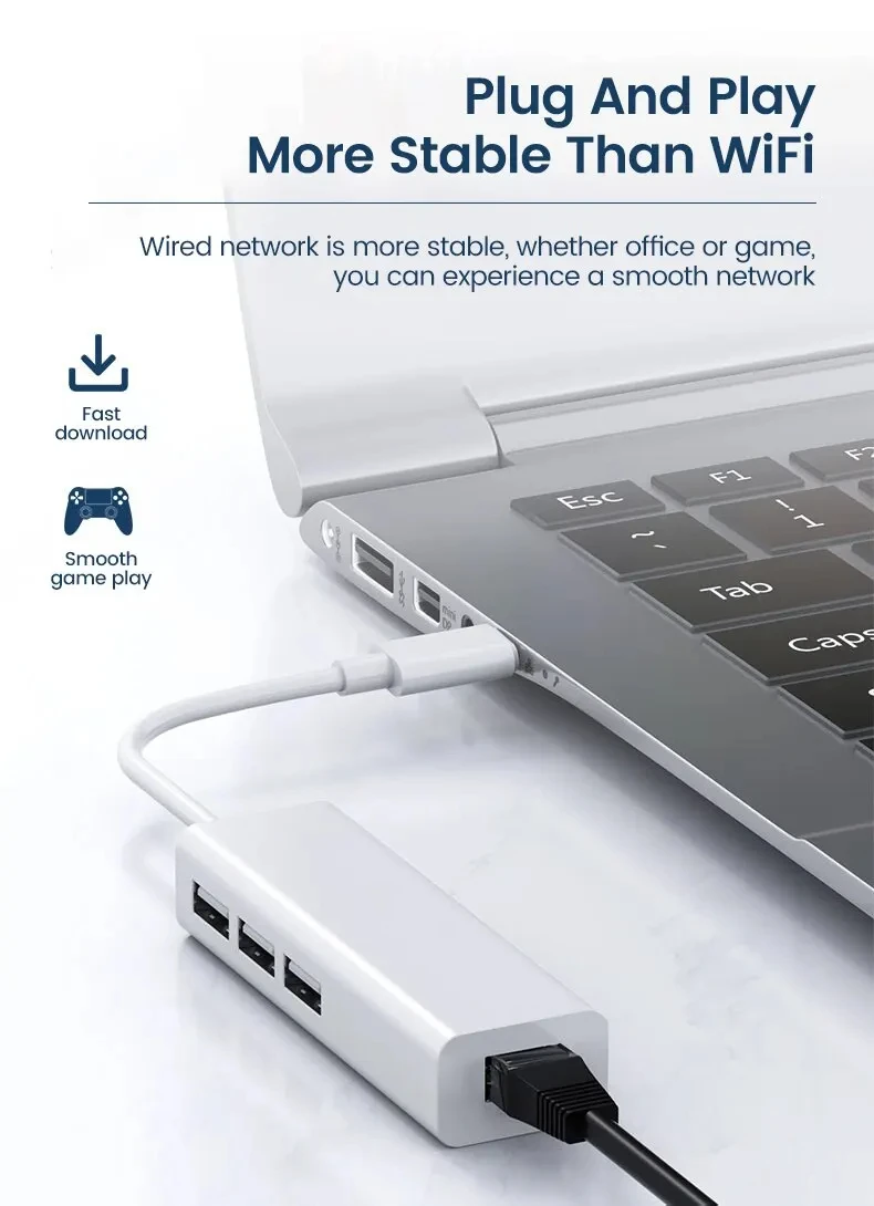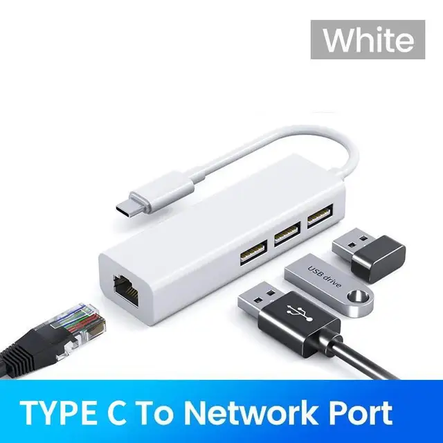 USB C HUB 100Mbps 3 Ports USB 2.0 Type C HUB USB to Rj45 Lan Ethernet Adapter fo