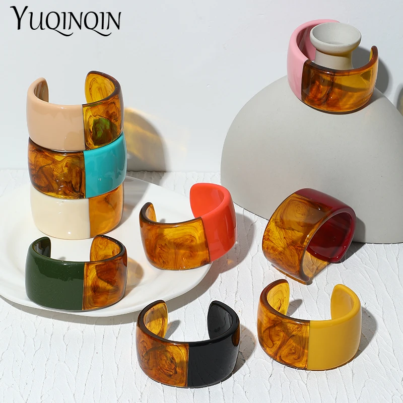Vintage Resin Cuff Bracelet Bangles for Women Colorful Acrylic Wide Open Bracele