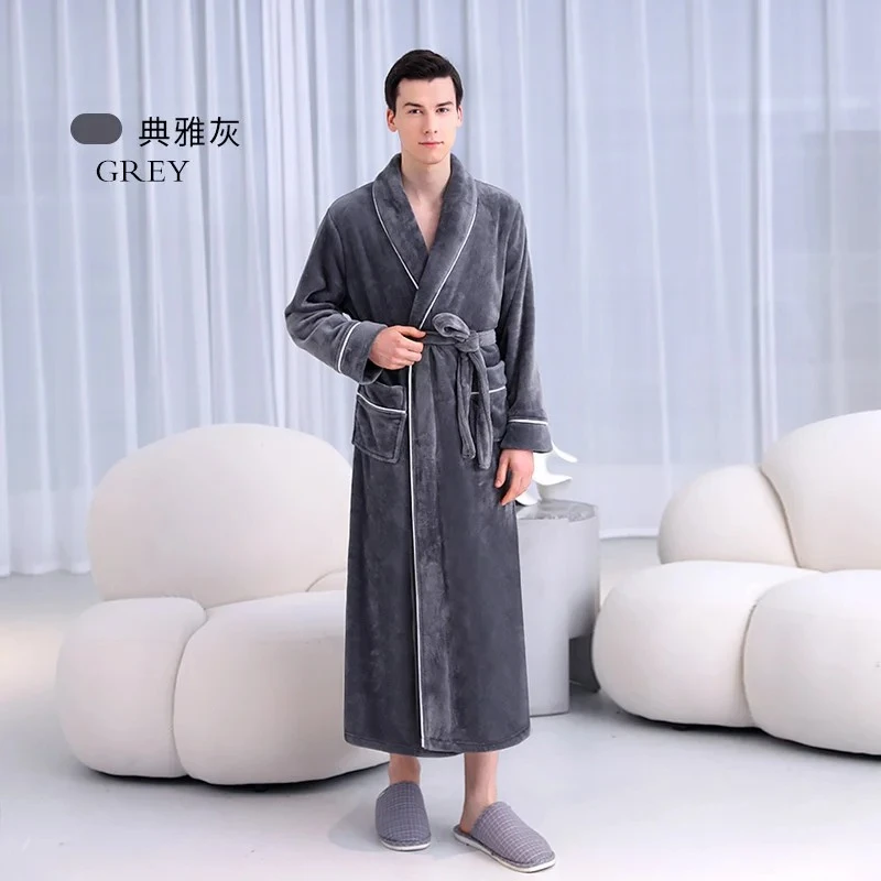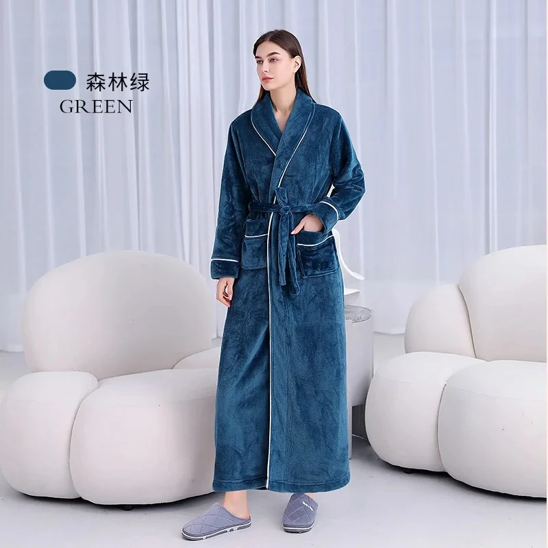 Warm Coral Fleece Kimono Bathrobe Gown Winter Thickened Flannel Couple Nightwear Loose Home Wear Long Robe Sleepwear