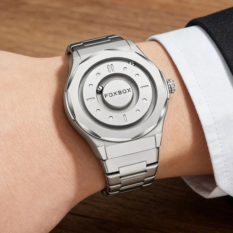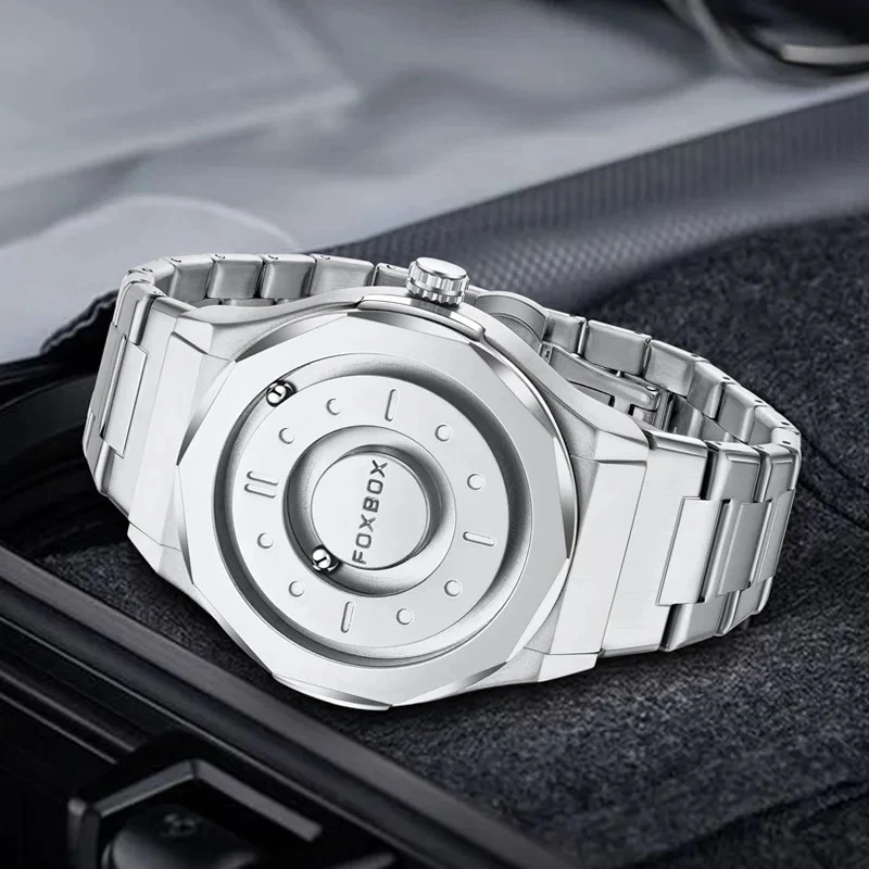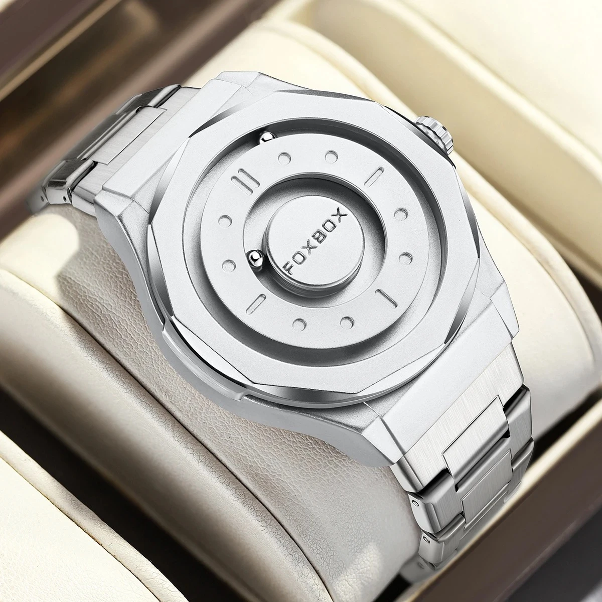 Watch Men FOXBOX Magnetic Watches Quartz Waterproof Multiple Straps Stainless Steel bracelet Watches Silver Dial Fashion Sports