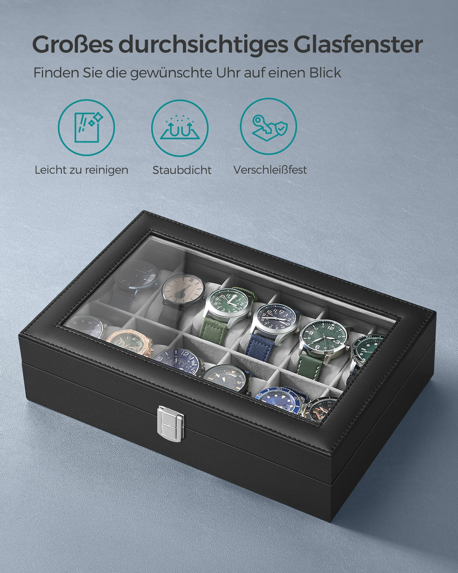 MultifunctionalNot only watches, but also trinkets fit into this box when the watch pillows are taken out. Your valuable watch collection deserves a high quality watches box. This watch box from SONGMICS is the ideal choice for anyone who owns many wristwatches. The advantages of this watch box at a glance:
