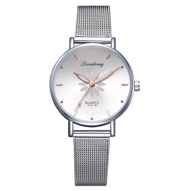 Watches For Women Luxury Silver Popular Pink Dial Flowers Metal Ladies Bracelet