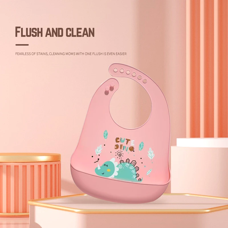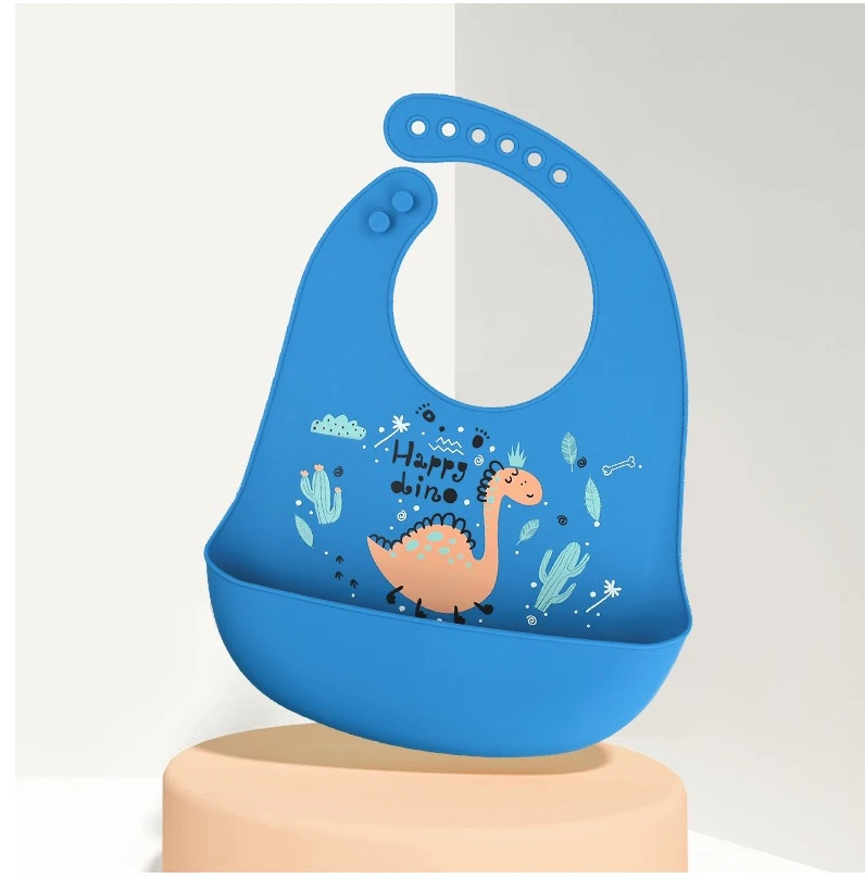 1pcs Waterproof Baby Bibs Cartoon Dinosaur Printed Kids Bibs Adjustable Soft Silicone Bib Baby Feeding Stuff