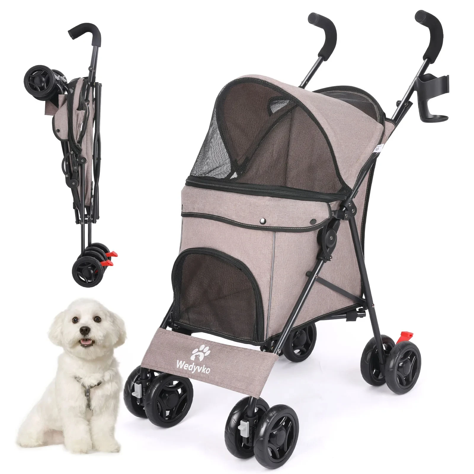 🐶 Lightweight & compact 9 lbs, 4 Wheels Pet Stroller Dog Cat Cage Jogger Stroller, Max Load: 33 lbs.