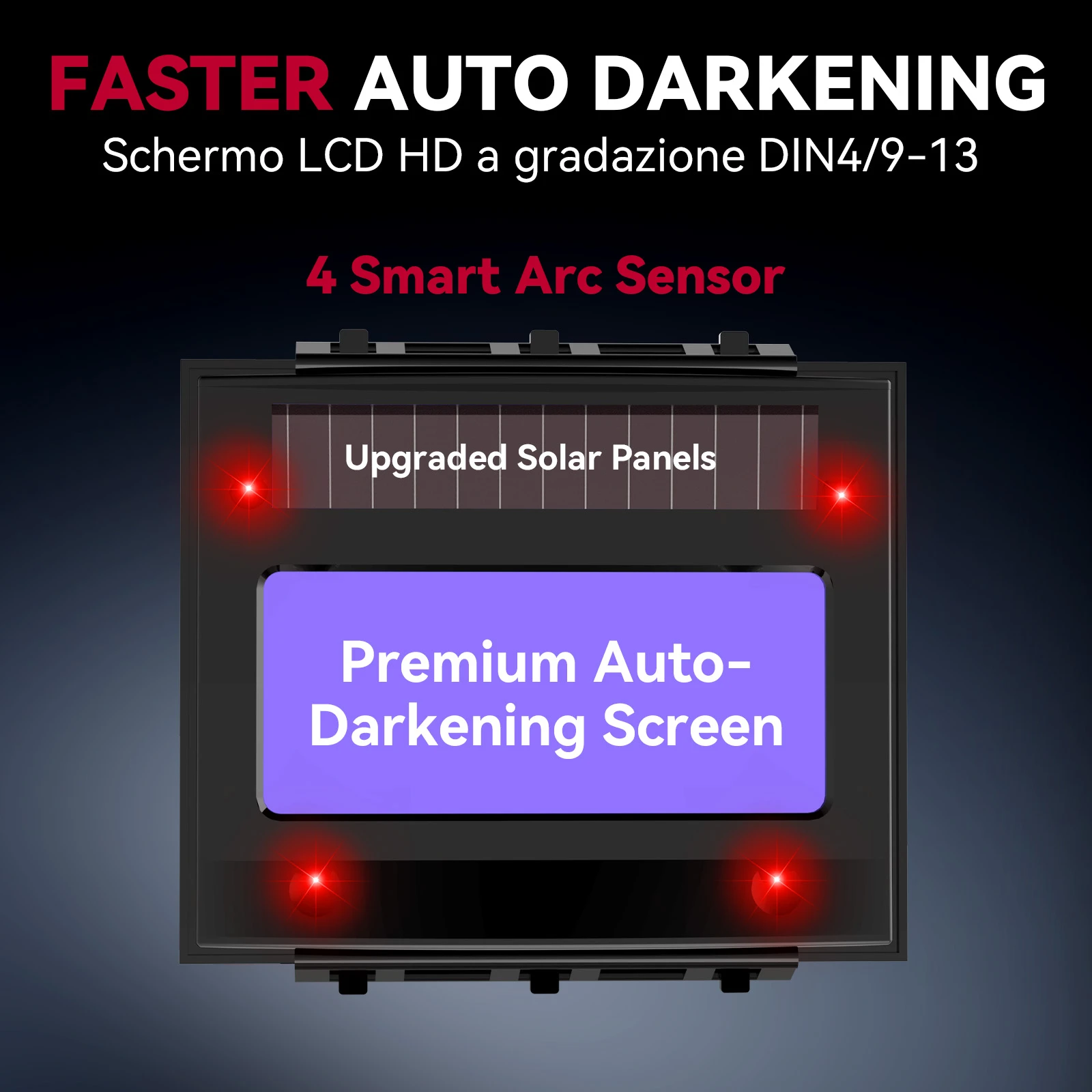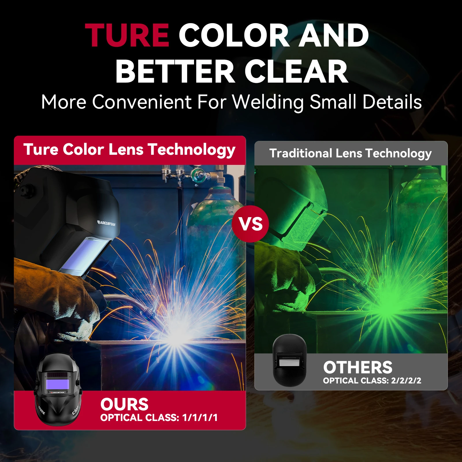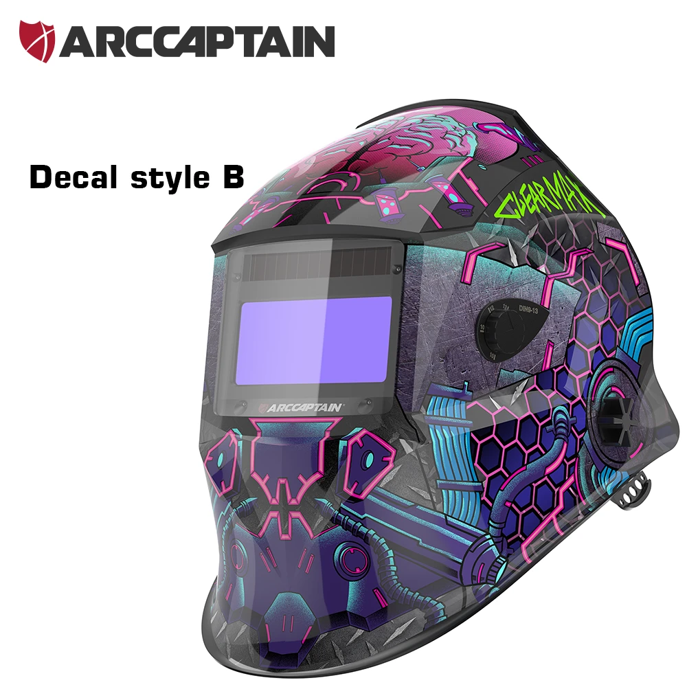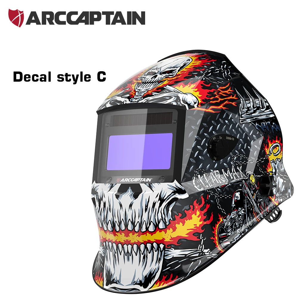 ![]() ![]() ![]() ![]() Material: High-impact resistant PA Solar Powered: Yes Auto-Darkening: Yes Switch Time: 1/25000S Helmet Material: Nylon View Area: 98X43mm |Best Shade For Stick Welding|Captain Filter| **Optimized Eye Protection and Clarity** The ARCCAPTAIN Welding Helmet is engineered to provide superior eye protection and clarity for welders. The helmet features a top-tier optical clarity lens with advanced true-color technology, ensuring that welders can enjoy a clear view of their work while wearing the helmet. The large viewing screen of 3.86”×1.69” is designed to minimize visual distortion, allowing for precise and efficient welding. The helmet's auto-darkening filter is equipped with four arc sensors that swiftly adjust from light to dark in just 1/25000 of a second, providing a seamless transition between welding and grinding modes. **Advanced Technology and Comfort** The ARCCAPTAIN Welding Helmet is not just about protection; it's about comfort and adaptability. With its smart filters, the helmet offers optimal UV/IR protection, safeguarding the eyes from intense welding glare. The helmet's solar-powered design is not only eco-friendly but also ensures that the welding helmet remains powered for an extended period without the need for frequent battery replacements. The helmet's lightweight construction, at just 1 pound, reduces the load on the cervical spine, making it comfortable for long hours of use. Furthermore, the helmet's dynamic adjustable headgear, complete with breathable padding, provides a custom fit for various head shapes and sizes. **Durable and User-Friendly Design** The ARCCAPTAIN Welding Helmet is designed to withstand the rigors of professional use. Made from high-impact resistant PA material, the helmet is shock and flame resistant, ensuring long-lasting durability. It meets the stringent safety standards of ANSI Z87.1/ EN379 CE/ CSA Z94.3, making it a reliable choice for professionals. The helmet's external sensitivity and shade buttons can be adjusted without removing the helmet, providing convenience and flexibility during welding tasks. The weld/grind button allows for quick mode transitions, making this helmet a versatile tool for various welding scenarios. |