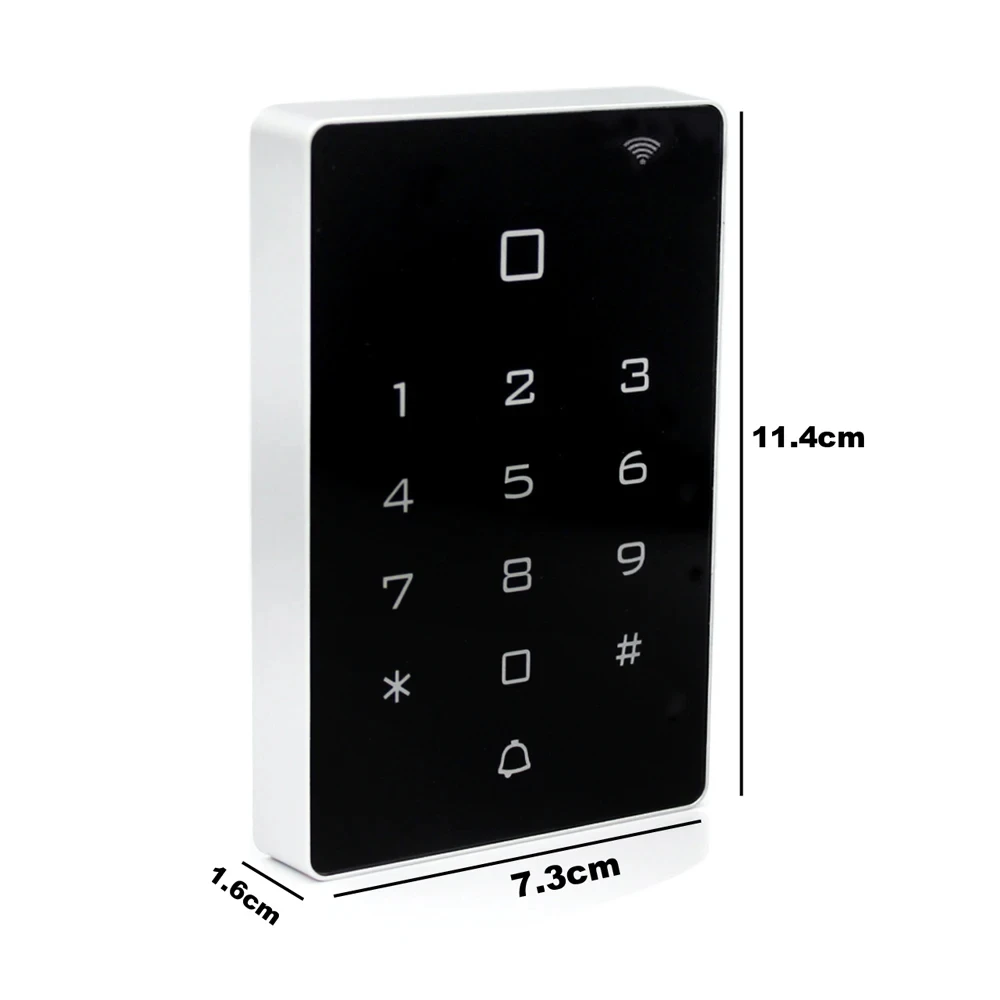 Note:this machine support Wirgand 26input and output, it means it can contect access reader and alos can conect access control Board panel(used as reader) note:Enter * 999999 # 73 # to enter wifi pairing mode Introduction The device is a standalone access control and proximity card reader which supports EM card types. It builds-in STC microprocessor, with strong anti-interference ability,high security and reliability,powerful function and convenient operation. It’s widely used in high-end buildings, residential communities and other public places. Ultra-low Power: Standby current is less than 30mA Wiegand Interface: WG26 input and output Searching time: Less than 0.1s after reading card Backlight keypad: Operate easily at night Doorbell interface: Support external wired doorbell Access ways: Card, Pin code, Card & Pin code Independent codes: Use codes without related card Change codes: Users can change codes by themselves