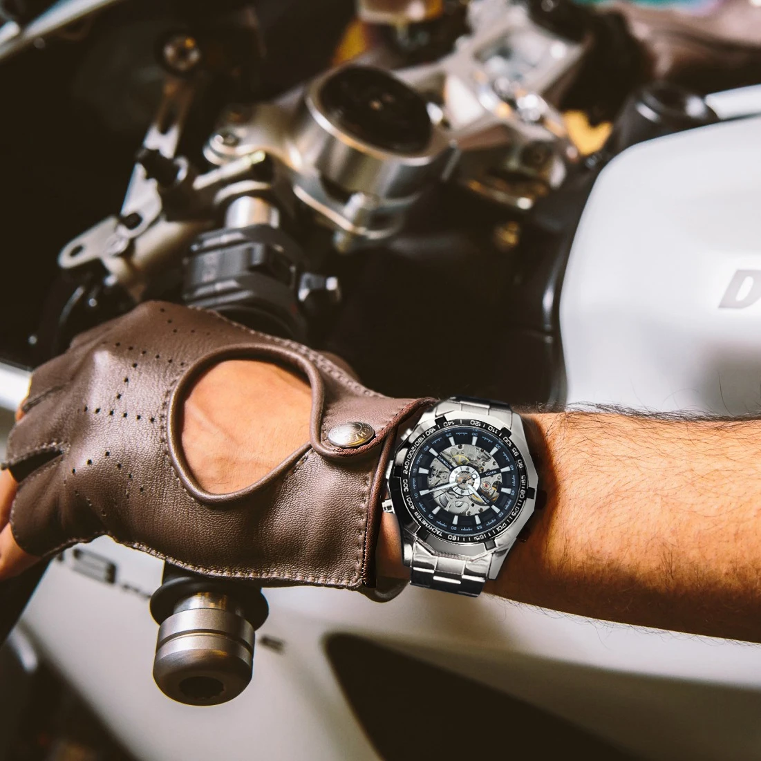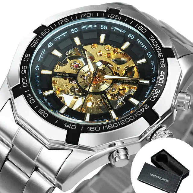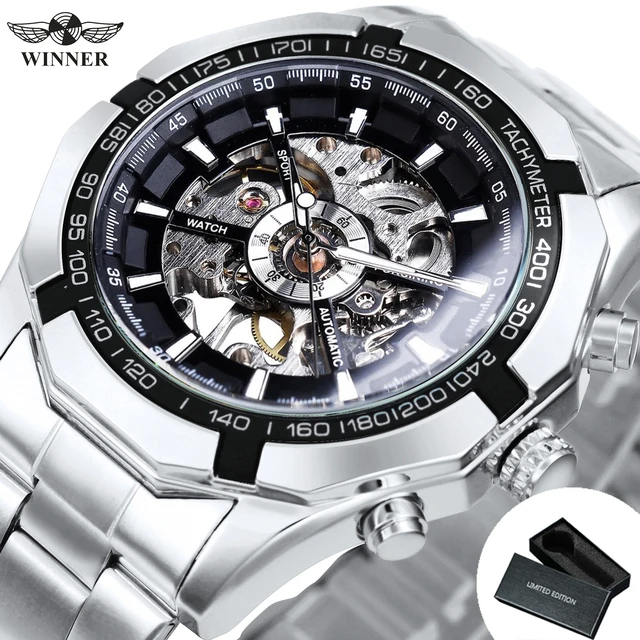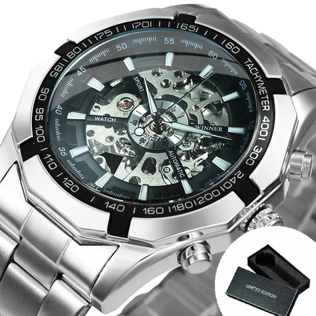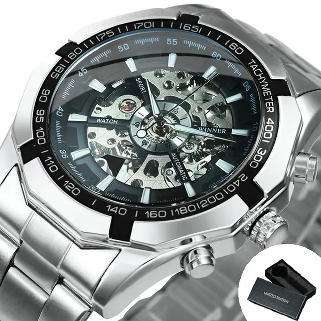 WINNER Classic Skeleton Watch for Men Luminous Hands Mechanical Watches Stainles
