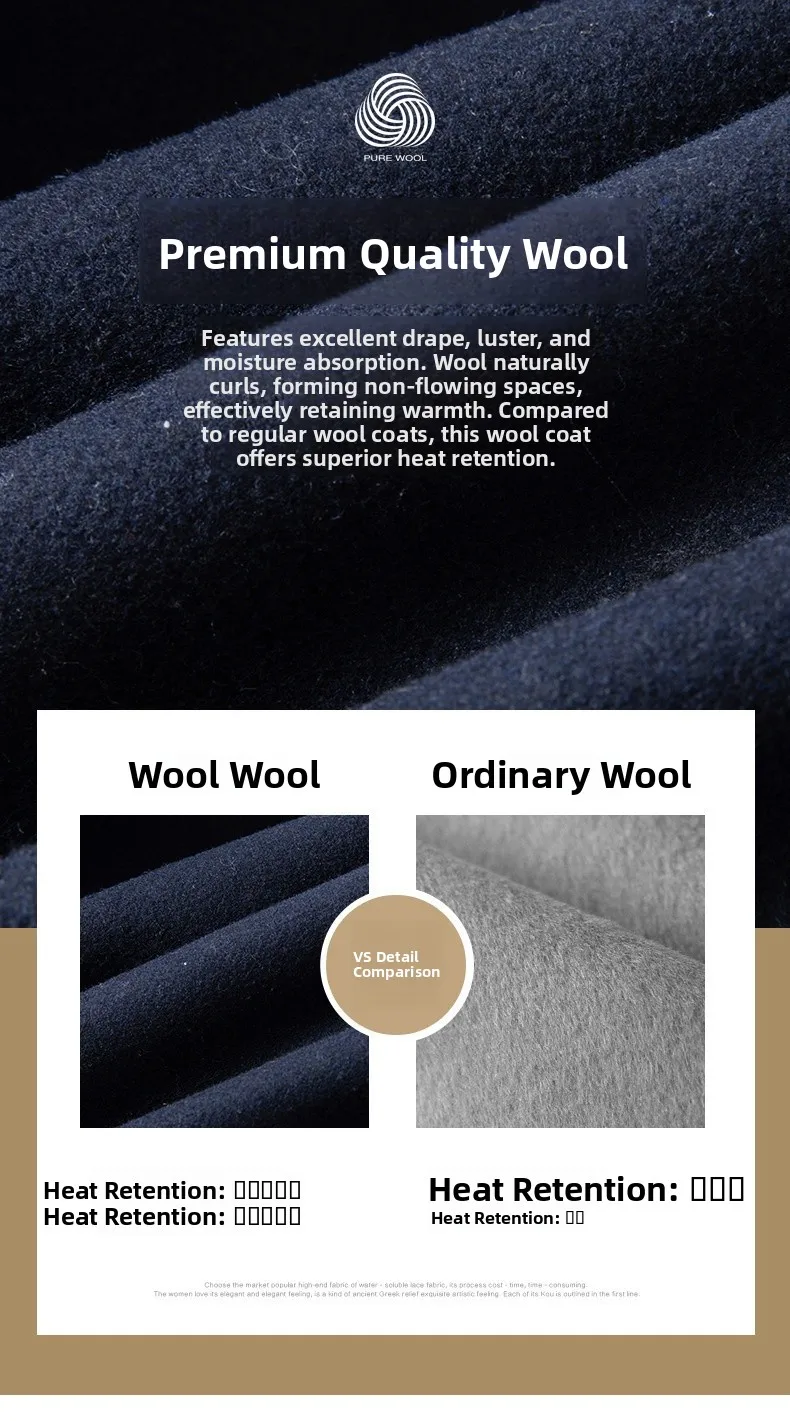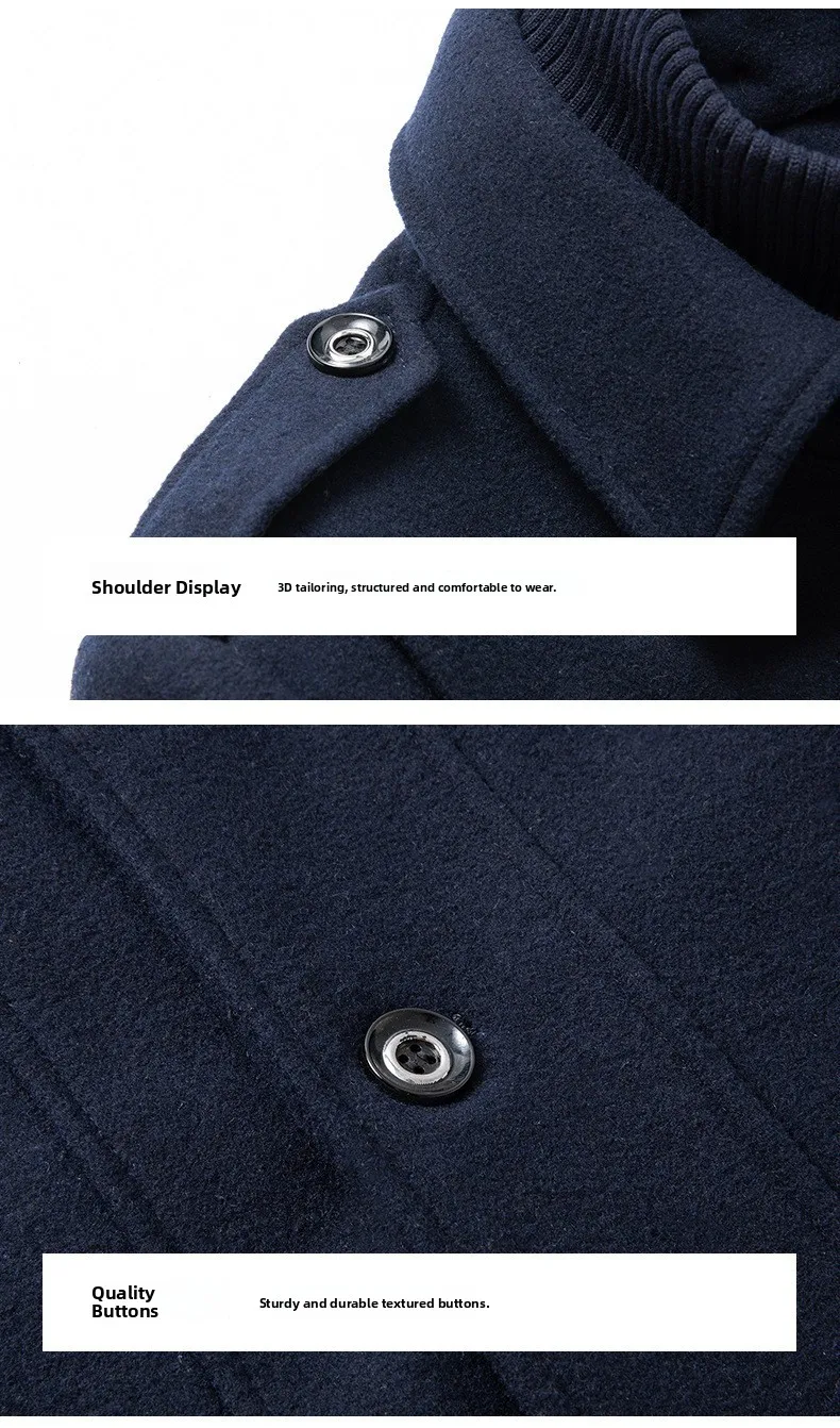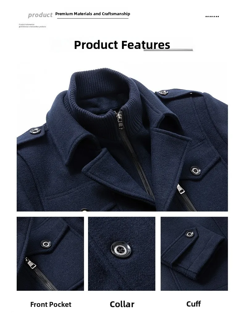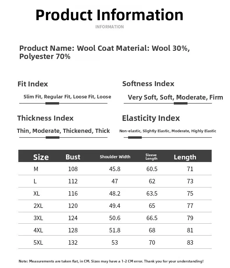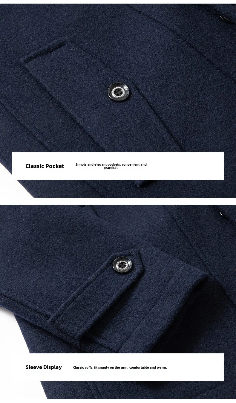 European Fashion Trend Following the European fashion trend, this coat features a timeless monochromatic pattern, making it a versatile addition to any wardrobe. Thickened Woolen Material Crafted from high-quality wool, this coat offers exceptional warmth and durability for the winter season. Cross-Border Availability This coat is available for cross-border sales, making it an ideal choice for international fashion enthusiasts. Business Casual Style With its sleek design and classic double-layer collar, this coat is perfect for both business meetings and casual outings. Ease of Care This coat has been treated with a non-iron finish, ensuring it remains crisp and neat without the hassle of ironing.
