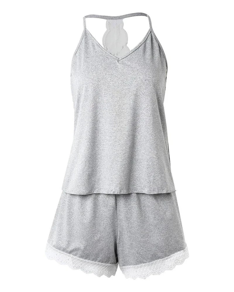 Women's Crochet Lace 2 Pieces Pajamas Sleeveless V-Neck Set Casual Sleepwear Suit Sexy Solid Home Clothes Summer Wear