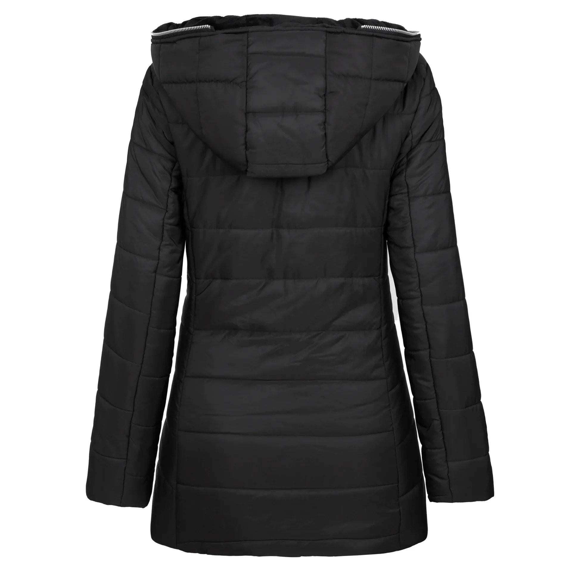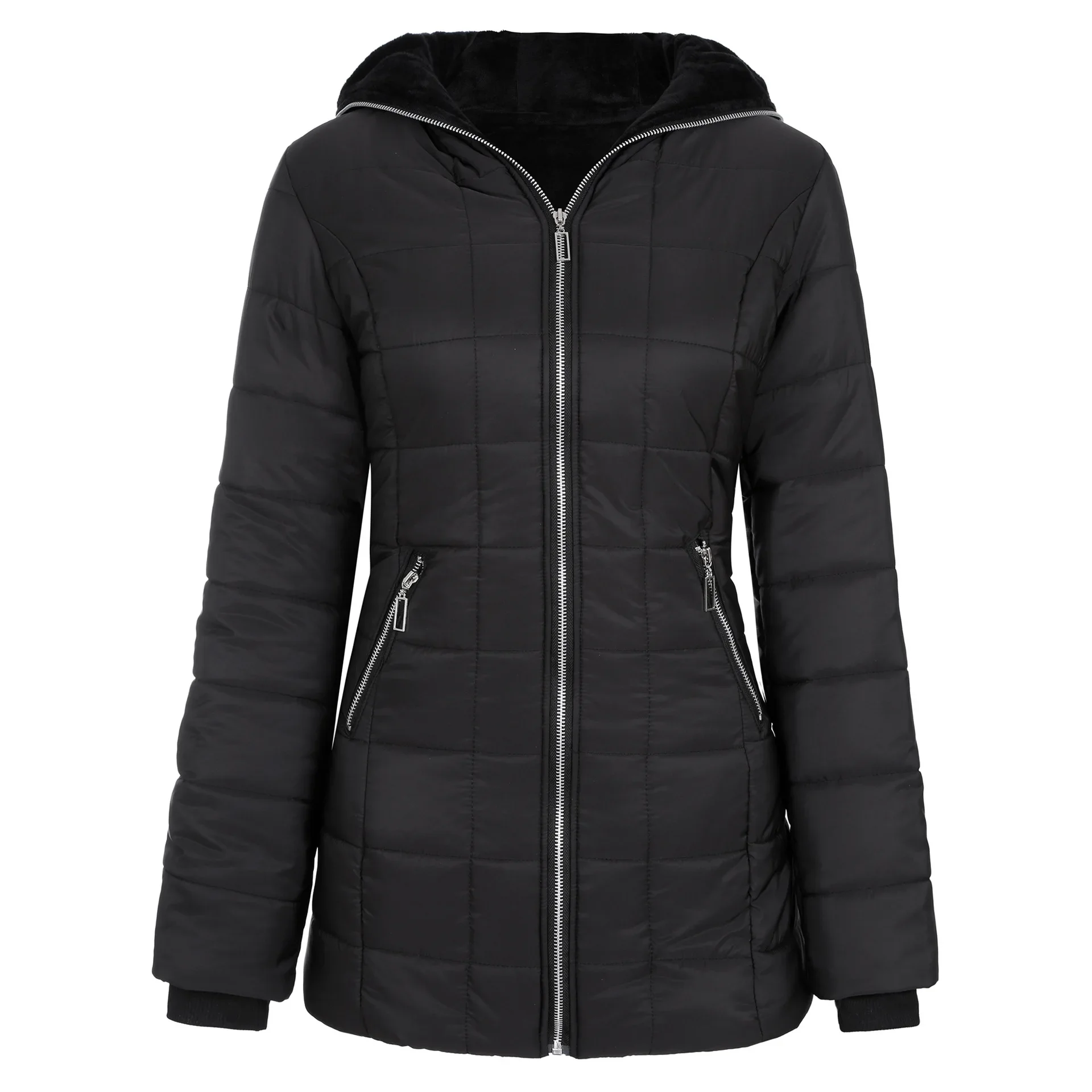 Women's Hooded Long Sleeve Cotton-padded Fleece-lined Winter Jacket Medium-lengt