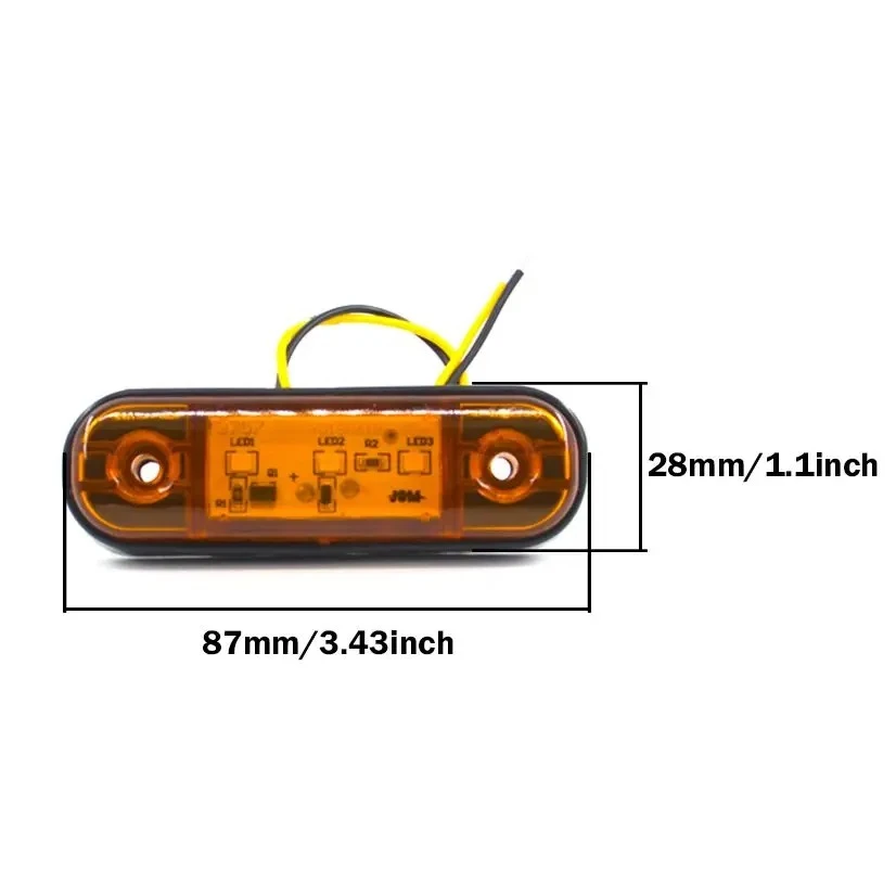 Specification: Model:003 Product Name: Side Marker Light Waterproof: Yes Material: Environmentally friendly PC Service life:50000h Working voltage: 12 V-24 V Installation location: Wing, front, trailer frame Protection: Waterproof performance IP67 Light Source: 3W LED Equipment: with sealing gasket Number of LED per lamp:3 Light color:Red / Orange / White Size:8.7 * 2.8 * 1.25cm (length x width x height) Hole spacing: 6cm/2.36inch Wire length: 18cm Positive and negative display:As the picture shows Qty: 10X Features: High quality, low power consumption. Easy to install, long-lasting and durable. Waterproof, reliable and safe. Can be used for side marker lights, rear lights, etc. Fits for most Buses/Trucks/Trailers/Lorries. Note: 1.We provide clear pictures, measurements where possible. Please check as much as possible to make sure the item is the one that you need. 2. Please allow 0.1-0.5inch difference due to manual measurement.(1inch=2.54cm) 3.The color of the actual items may slightly different from the listing images due to different computer screen, thanks for your understanding. Package Included: 10x Side Marker Light 20x Screws ![]() ![]() ![]() ![]() ![]() ![]() ![]() ![]() ![]() ![]() ![]() |