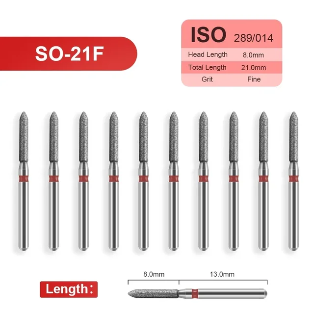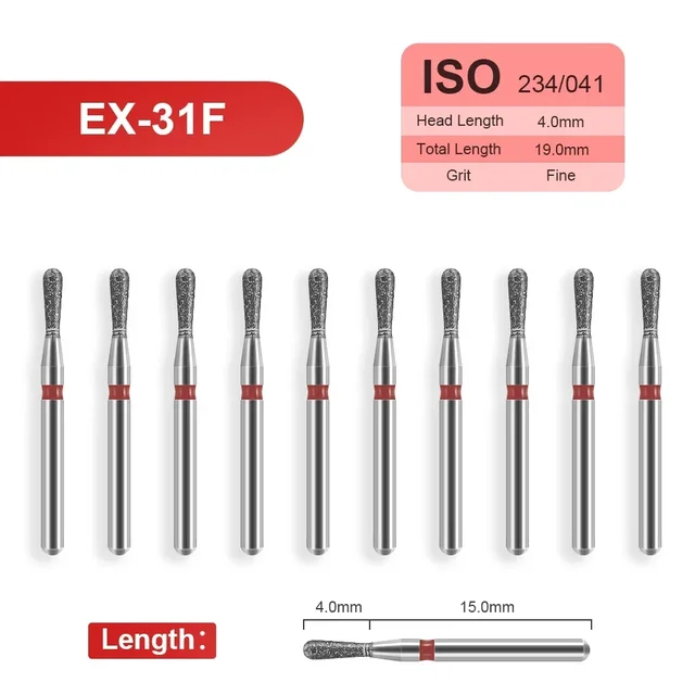 10pcs/box Dental Diamond Burs Drill 1.6mm Shank for High Speed Handpiece Burs Em
