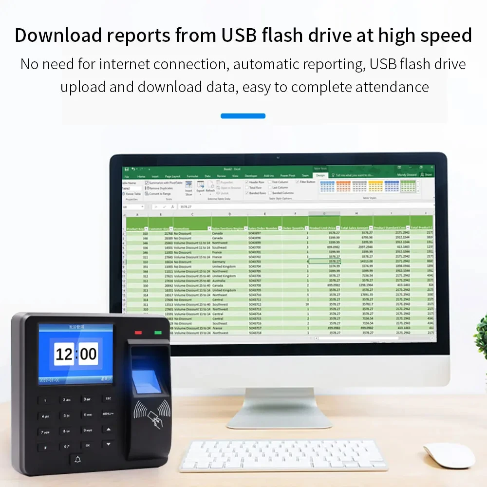 Access Control Time Attendance Machine Fingerprint Recognition/Password/125Khz RFID Card Time Clock Employee Check-in Recorder Fingerprint access control terminal: intelligent, secure, convenient, and efficient Support multi-language Support input methods from multiple countries Support importing and exporting attendance tables from USB drives USB power supply 1. Comprehensive security guarantee Multi layer protection mechanism: The device not only supports multiple hardware configurations (such as door locks, magnets, switches, and alarm devices), but also provides flexible Wiegand 26/34 bit output parameter settings to ensure compatibility and security with different systems. Public password function: In emergency situations, users can quickly open the door with a preset public password, improving emergency response speed. 2. Strong usability Intuitive user interface: All necessary settings can be completed in just a few simple steps. After entering the main menu, select "Access Ctrl" to easily manage various functions. Detailed instruction manual: From the appearance of the device to the connection method, to the recommended steps for first-time use (shift settings → department settings → attendance rules → employee input, etc.), each step has clear guidance to help you quickly get started. 3. Stable and reliable performance High quality manufacturing process: using durable materials and technology to ensure long-term stable operation and reduce maintenance costs. Easy to install and maintain: Whether in normally open or normally closed mode, the door lock connection is very simple, reducing installation difficulty; At the same time, the function of restoring default settings also makes troubleshooting easier. 4. Intelligent management Employee Information Management: Supports a detailed employee input system, facilitating the management of employee entry and exit records, generating attendance reports, and improving the internal management level of the enterprise. Flexible application scenarios: suitable for various places such as offices, factories, residences, etc., to meet the needs of different customer groups. In summary, this fingerprint access control terminal integrates advanced technology and a user-friendly design concept, providing users with a secure and convenient choice. It is not only an effective tool for protecting property safety, but also a good helper for improving work efficiency.
