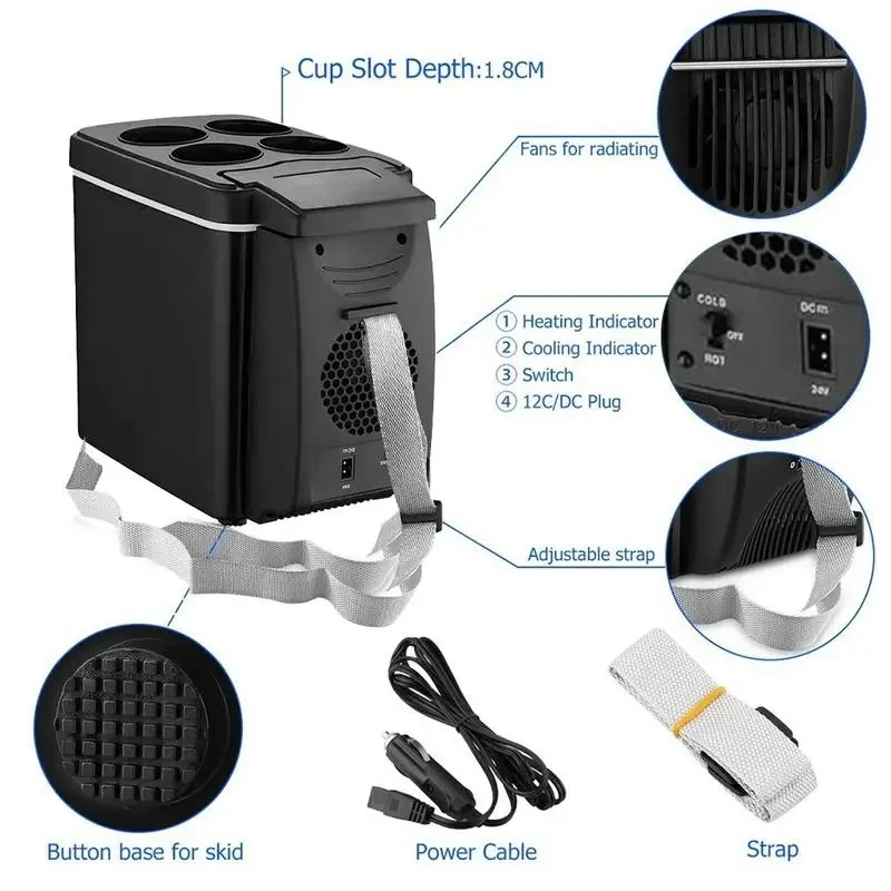 Bullet Points: 1.Package Include: 1 x 6L Portable Cooler&Warmer Car Refrigerator 1 x Car charger 1 x Strap 1x User Manual 2.Environmental protection without fluorine pollution, small volume, light weight, long service life. 3.2 in 1 Cool and warm use; Car&Home use, just buy an adapter if wanna use it at home. While refrigeration, it is able to be 15-25 lower than the room temperature. While heating, it is able to reach 605. 4.Environmental protection without fluorine pollution, small volume, light weight, long service life. 5.Quiet motor and fan circulate air for even cooling/heating. Features: -A perfect item for family road trips or anyone who spends a lot of time driving and gets hungry and thirsty on the road -Environmental protection without fluorine pollution, small volume, light weight, long service life. -Quiet motor and fan circulate air for even cooling/heating -2 in 1 Cool&warm use; Car&Home use, just buy an adapter if wanna use it at home. -Uses 12 Volts power to cool or warm drinks and food Specification: Material: ABS & electronic components Capacity:6L While refrigeration, it is able to be 15-25℃ lower than the room temperature While heating, it is able to reach 60℃±5℃ Size(L x W x H): 25.5x 18.5 x 32.5 cm / 10.03 x 7.28 x 12.79 inches Wire Length: 180cm Strip Length: 143cm Net Weight: 1.37KG Input Voltage:12V How to use: 1.The car engine is required. 2.Make sure the switch at the side of the cooler and warmer is in OFF state, and then insert the plug of the power cord into the socket of the unit. 3.Insert the plug of the cigarette lighter into the car 4.Cooling: set the power switch at the position of COOLING. The green indicator will be on indicating the unit is in the cooling mode. 5.Heating: set the power switch at the position of HEATING. The red indicator will be on indicating the unit is in the heating mode. Application: 1. For holding banquet beside the lake 2. For taxi drivers 3. Cold medicines 4. For preservation of fresh milk and warm food 5. For picnics and on camping trips 6. Refrigerated cosmetics 7. Home use or in the office or construction site(adapter excluded) Warming and Notice: 1. Prevent the fans from being stuck. The fast being stuck will heat the engine and cause fire. The towel, cloths and the like shall not be put on it. 2. Pls confirm the sockets of the cords to be tight. The loose socket will result in the cords and sockets heating and broken, even fire. 3. Keep the appliance away frm the flammable items and dampness to prevent the explosive and fire. 4. Don’t switch the function of cool/warm abruptly. Switch the function after 30 minutes of being on OFF. 5. Don’t rinse it with water. 6. Don;t break up or refit the appliance. 7. Prevent the appliance from being upside down. 8. Pls don’t drop or shock it. 9. Raw food or seafood can not be put in the appliance directly. Package for this kind food must be needed. 10. If you have any other questions, please feel free to contact us. Package Include: 1 x 6L Portable Cooler&Warmer Car Refrigerator 1 x Car charger 1 x Strap 1x User Manual